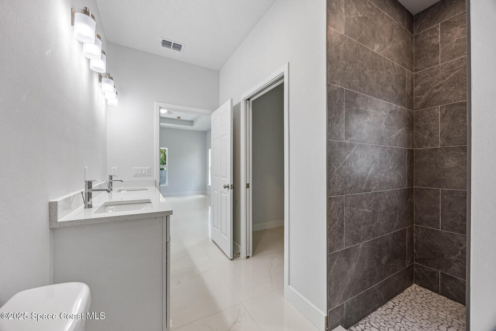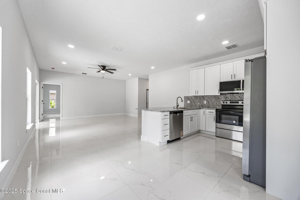 Step inside and be greeted by a flexible bonus space and oversized white tile that flows throughout the home. This 3-bedroom, 3-bathroom home includes two spacious guest bedrooms, each with access to luxury bathrooms featuring floor-to-ceiling shower tile. A separate laundry room adds extra convenience. The heart of the home is the open living area, connected to a stunning kitchen with granite countertops, 42-inch cabinets, and premium finishes throughout. At the back of the home, you'll find the large primary suite with a spa-like bathroom, including a walk-in shower with floor-to-ceiling tile, double vanities, and a modern, elegant design. Outside, enjoy your covered, paver patio with a fire pit, perfect for relaxing or entertaining. Located on a quiet street across from a park, this home has NO HOA, is on city water and septic, and offers luxury living without compromise. Don't miss out on this beautifully built home--schedule your showing today!
