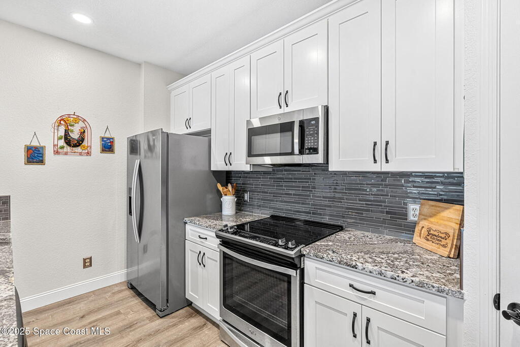 Welcome to this beautifully remodeled 3-bedroom, 2-bathroom home that offers comfort, style, and convenience--all on the highly desirable first floor. Unlike other units in the complex, this home features an open-concept kitchen that's been thoughtfully reimagined with granite countertops, stainless steel appliances, and crisp white shaker cabinets. The kitchen seamlessly flows into the living and dining areas, creating a bright, airy space perfect for entertaining or relaxing with a view of the outdoors. Updated luxury vinyl tile flooring runs throughout, adding warmth and durability. The flexible floor plan offers two possible ensuite bedrooms, or a traditional owner's suite with two additional bedrooms and a shared bath--ideal for families, guests, or a home office setup. The spacious owner's suite includes a large walk-in closet and a walk-in shower designed for easy accessibility. Enjoy your morning coffee or evening wine on the oversized lanai, a peaceful extension of