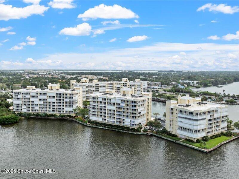 Lovely waterfront property on the Indian River. View beautiful sunsets, rainbows, and launches from the Cape. Watch dolphins, manatees, and stingrays swim below your balcony. Large unit with flex space for den, formal dining, or hobby area. Unit has recently been painted throughout. Hurricane shutters on balcony. One car individual garage inside the building plus exterior parking. The clubhouse offers meeting areas, library, sauna, gym, kitchen and dining area, and covered patio.Security guards on site.Pardon our dust. Owner has paid the assessment for new sports decks, pools & spas refurbishments, and north seawall and boardwalk repair. Repairs are slated for completion by the holidays.Come see the water views and lifestyle Island Pointe has to offer.