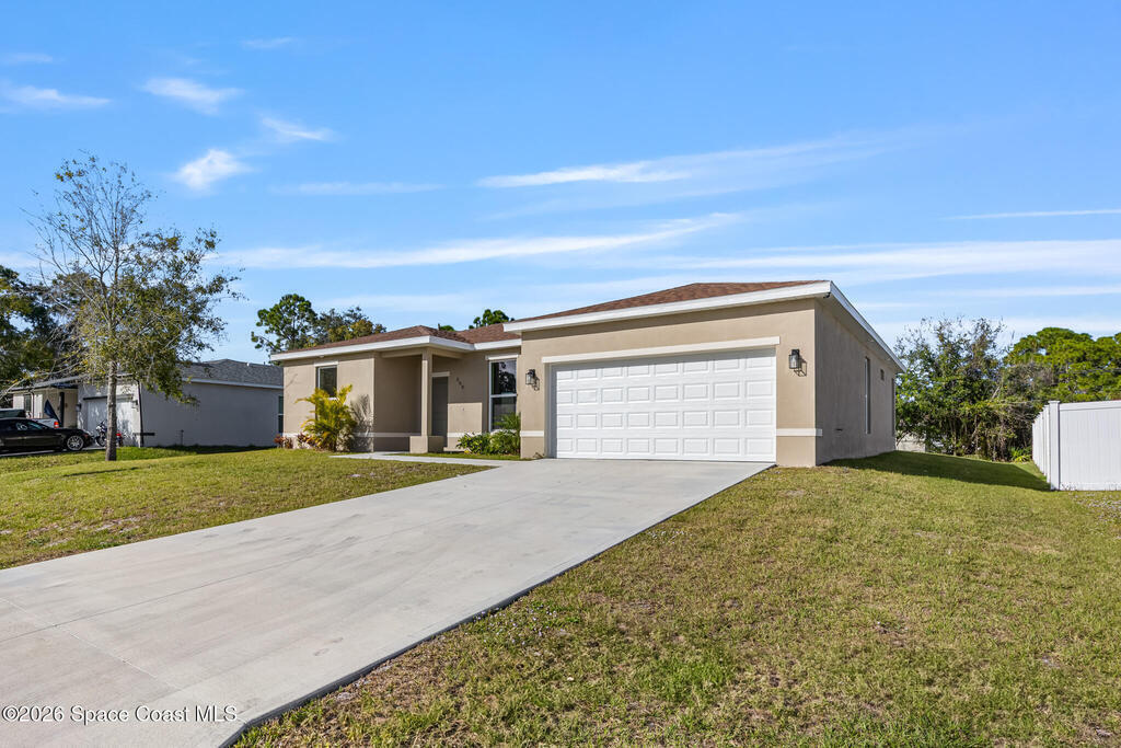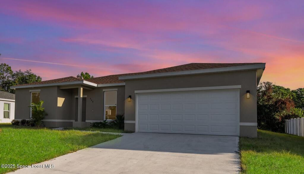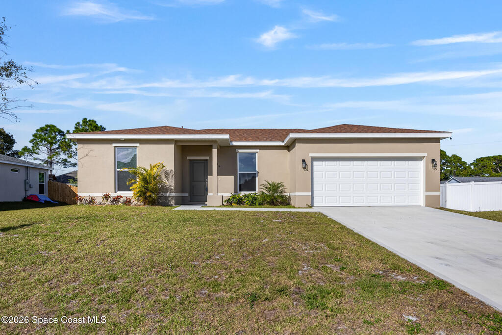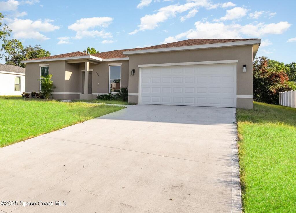 NEW construction! READY NOW! $5,000. Flex cash towards prepaids, closing costs and interest rate buydown. The energy-efficient 38'' x 78'' hurricane-impact windows and 2 car insulated garage door offer peace of mind and exceptional protection in this stunning semi-custom 4-bedroom, 2-bathroom, split plan concrete block home. This beautiful home is finished in warm, subtle tones and nestled on .24 of an acre. Enjoy a spacious open floor plan with expansive 9'4'' ceilings and easy-care plank flooring. The kitchen is designed for entertaining with a large breakfast bar, granite countertops, undermount sink, pendant lighting, 42'' upper cabinets for added storage, and stainless steel appliances. The luxurious primary bathroom showcases a free-standing soaking tub, elegant designer tile, an oversized walk-in shower with glass enclosure and granite countertops with dual sinks. The large primary bedroom features His and Her closets. Ceiling fans, an indoor laundry room.