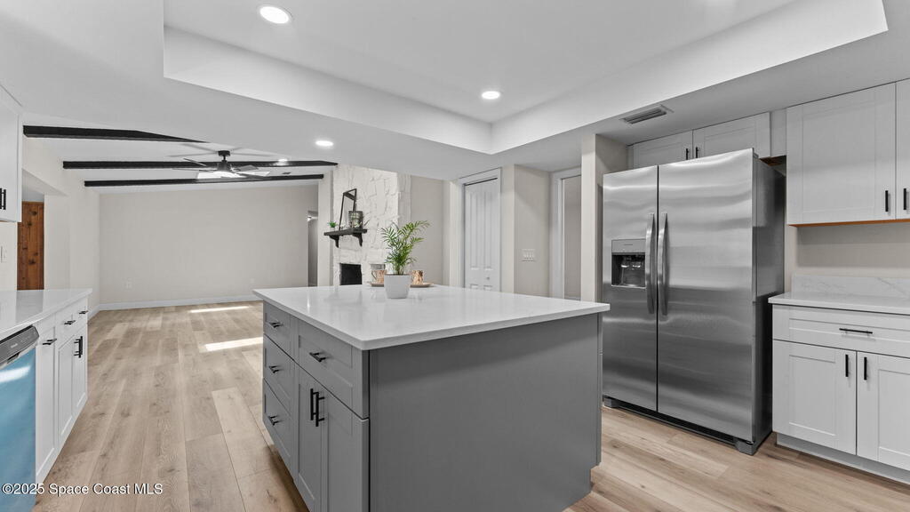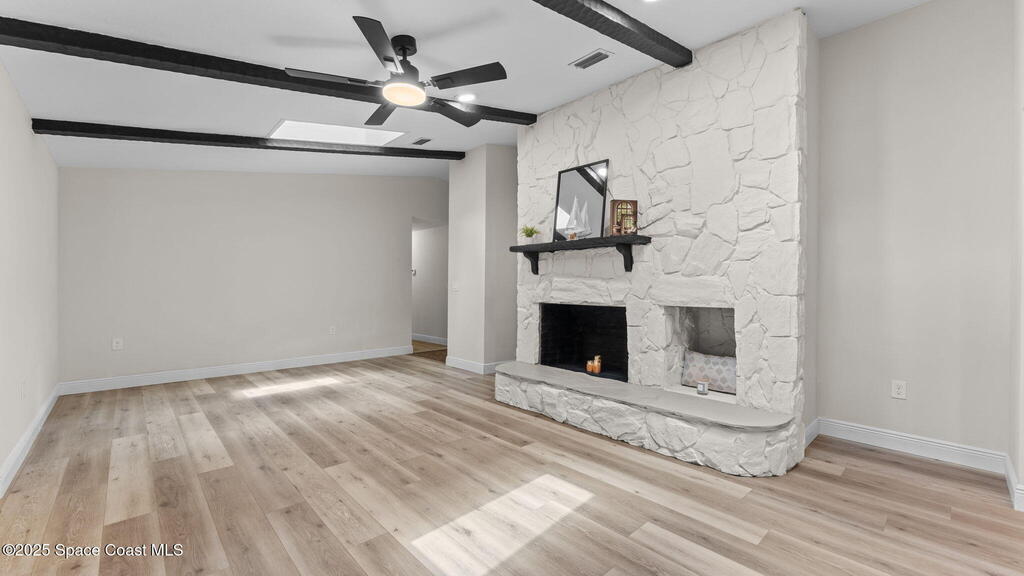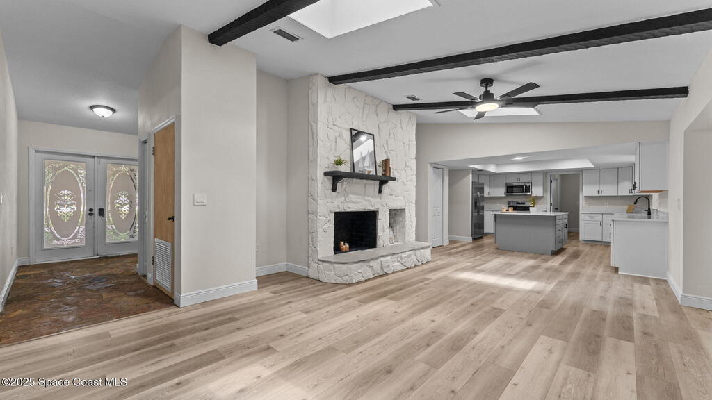 This stunning 4-bedroom, 3-bathroom home has been completely renovated and sits on a spacious 1.75-acre lot surrounded by beautiful mature trees, offering the perfect blend of privacy and charm. Inside, you'll find a bright and airy layout with a formal living room, a formal dining area, and a large great room centered around a cozy wood-burning fireplace.The heart of the home is the beautifully updated kitchen featuring quartz countertops, modern shaker cabinets, and a large center island perfect for entertaining or casual dining. The spacious primary suite offers double vanities, a relaxing garden tub, and ample closet space. All three bathrooms have been stylishly updated.With a brand-new roof, this home is move-in ready and built for comfort and style. Enjoy peace and space both inside and out--this is the one you've been waiting for!HIGH AND DRY EVEN AFTER BIG RAIN STORMS..NO FLOOD INSURANCE NEEDED ON THIS ONE!