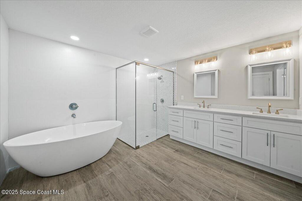 Welcome to waterfront living reimagined. This fully renovated 3 bedroom, 3 bath split-plan canalfront home has a fresh, modern feel with everything brand new. The oversized primary suite is a true retreat with a soaking tub, walk-in shower, dual vanities, and generous closets. The bright, open kitchen flows into the living room and out through sliders to a covered lanai overlooking a spacious backyard. One guest bedroom has its own ensuite, while the other is served by a hall bath--perfect for family or visitors. Outside, a brand-new day dock accommodates up to a 3' draft and is ready for your boat, kayaks, or paddleboards with no fixed bridges between you and the Banana River. An oversized two-car garage and indoor laundry make everyday life simple, while the location puts you minutes from the beach, Port Canaveral, local dining, shopping, the Space Center, and SR-528 for an easy ride to Orlando. This home is move-in ready and made for the coastal lifestyle.