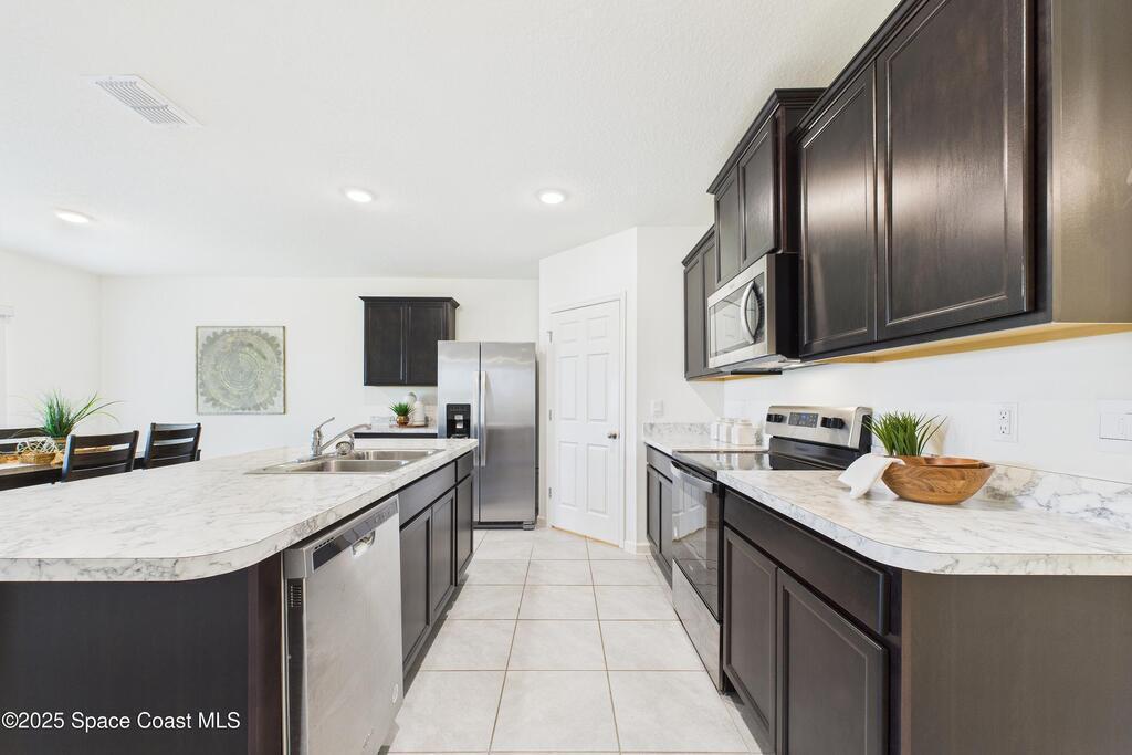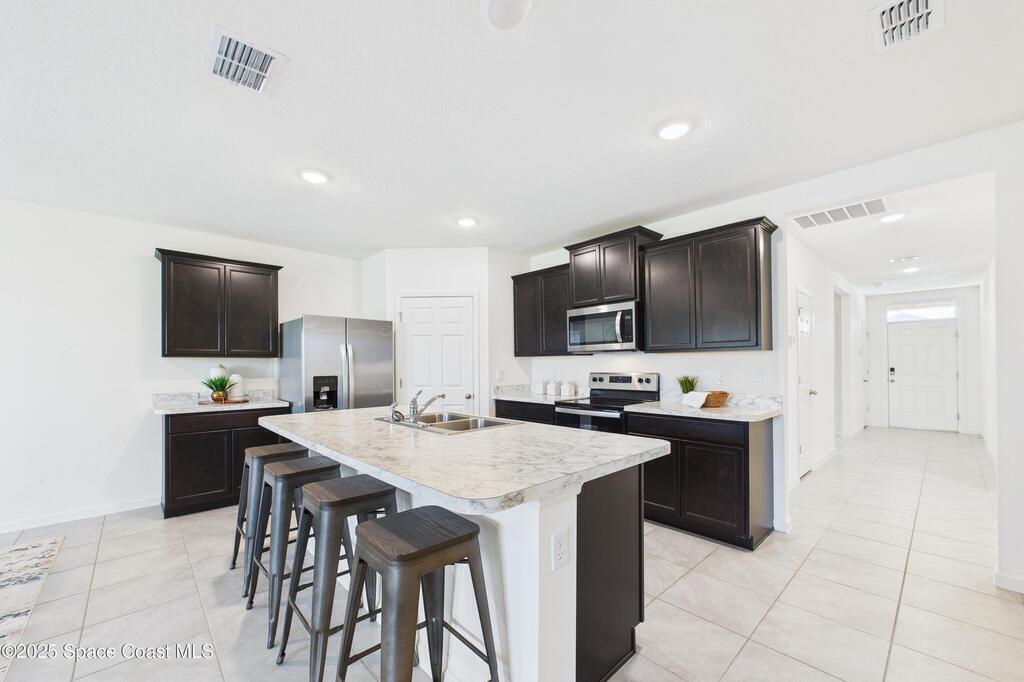 Welcome to 3479 Burrowing Owl Dr, a 2022-built gem in the sought-after Greens at Indian River Preserve in Mims, FL. This 4-bedroom, 2-bath home offers 1,916 sq ft of stylish, open-concept living. The bright family room flows into the dining area and gourmet kitchen, complete with a large island, sleek cabinetry, and stainless steel appliances. The private owner's suite provides a peaceful retreat, while three additional bedrooms offer space for family, guests, or a home office. Enjoy a charming rear porch, low-maintenance yard, and a two-car garage. Solid block and stucco construction ensures lasting quality. Just minutes from Indian River Preserve Golf Course, Titusville shopping and dining, I-95, and the Space Coast's beaches and Kennedy Space Center, this move-in ready Mims home delivers the perfect blend of comfort, convenience, and Florida living.
