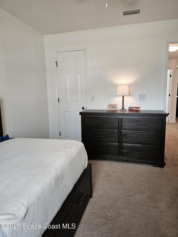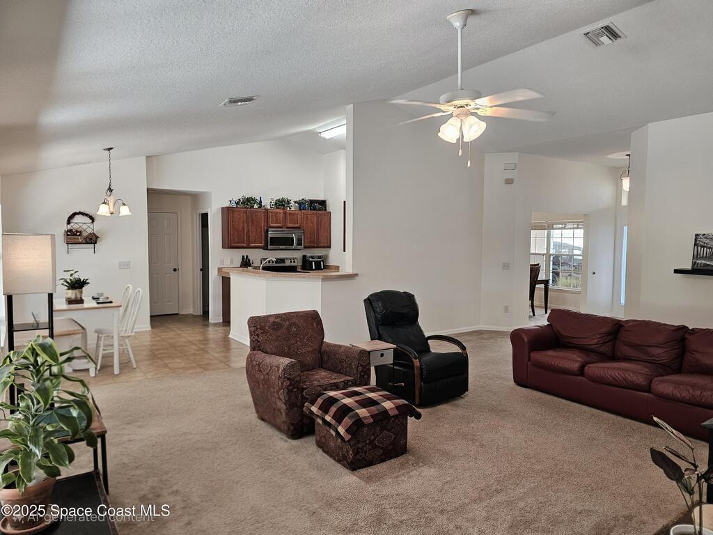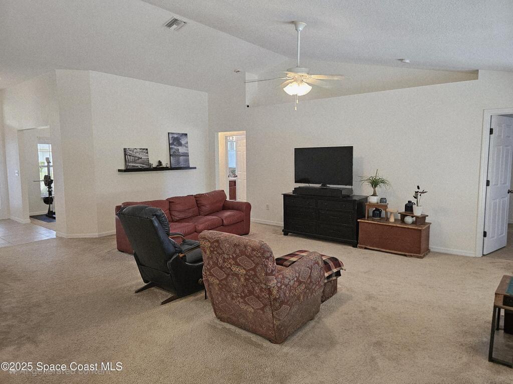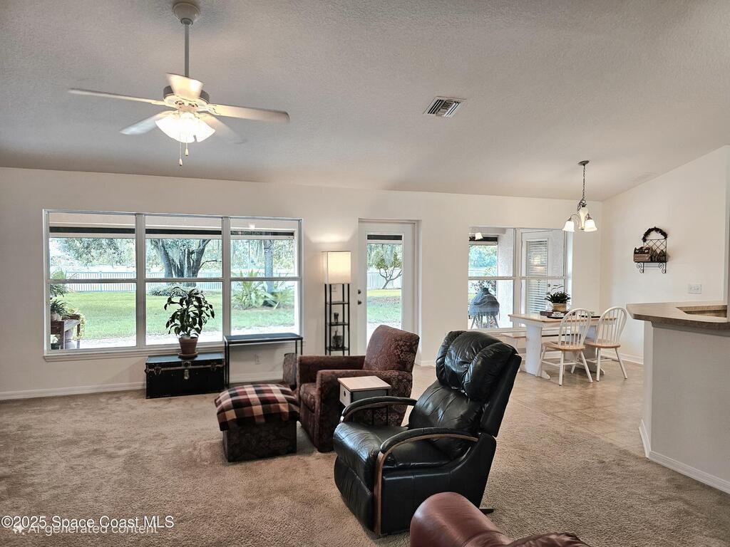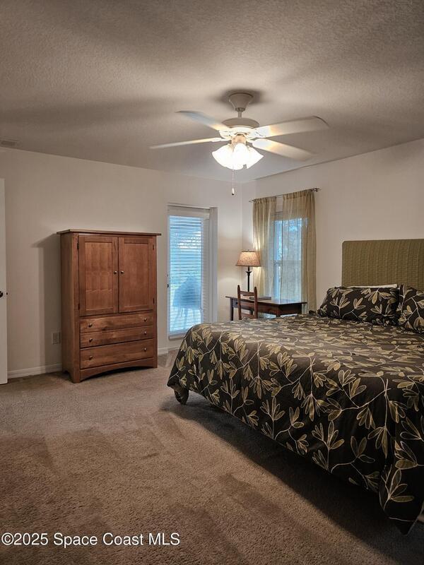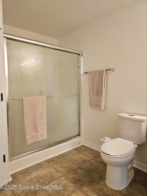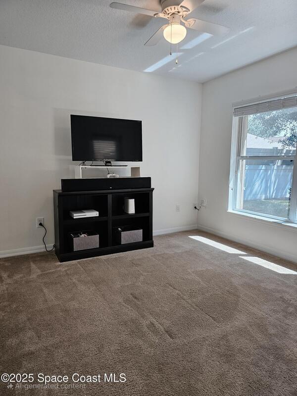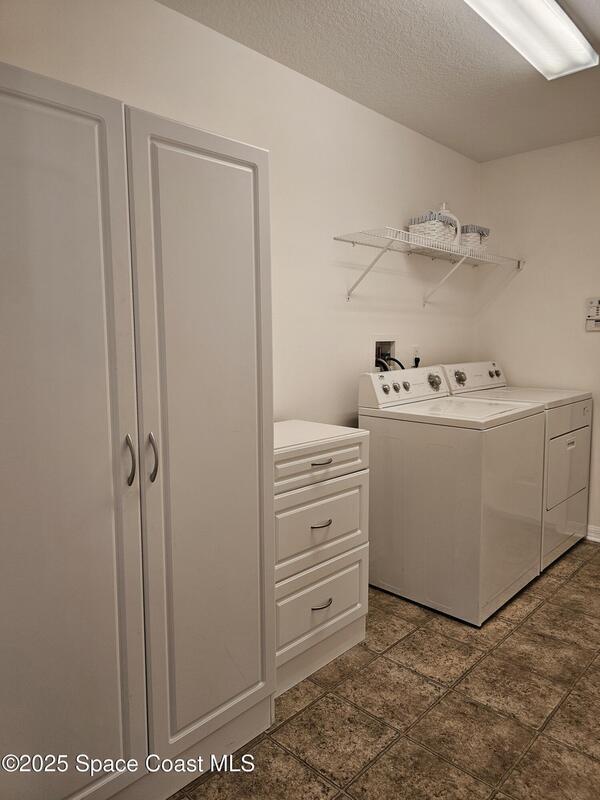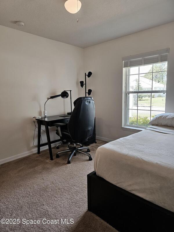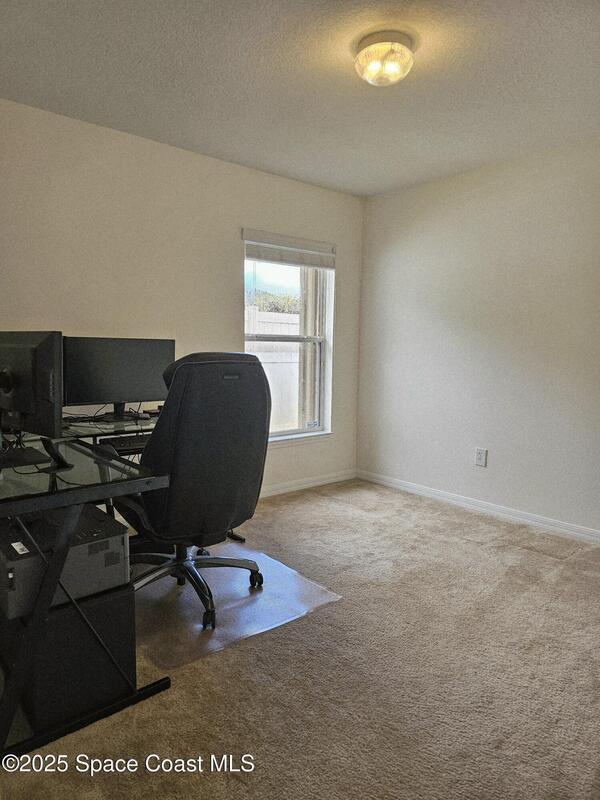 Oversized lot with amazing view of the pond and next to preserve area for additional privacy. Fenced backyard is a tropical paradise with large oaks for shade & mango tree. Community is tucked away at end of road but close to all that West Melbourne has to offer. Very well-maintained home offers large family room open to the kitchen & breakfast nook. Vaulted ceilings in main area. Front flex/den & formal dining room add more flexibility. Split bedroom plan with four bedrooms & two bathrooms. Primary suite has door to the lanai area, two walk-in closets, double sinks, soaking tub & separate shower. Back guest bedroom has door to lanai area & makes a great space for office or sunroom. Fresh interior paint throughout, brand new dishwasher & refrigerator. Accordion hurricane shutters & pulled down screens on lanai add peace of mind. Roof 2023, A/C 2023, HWH 2020