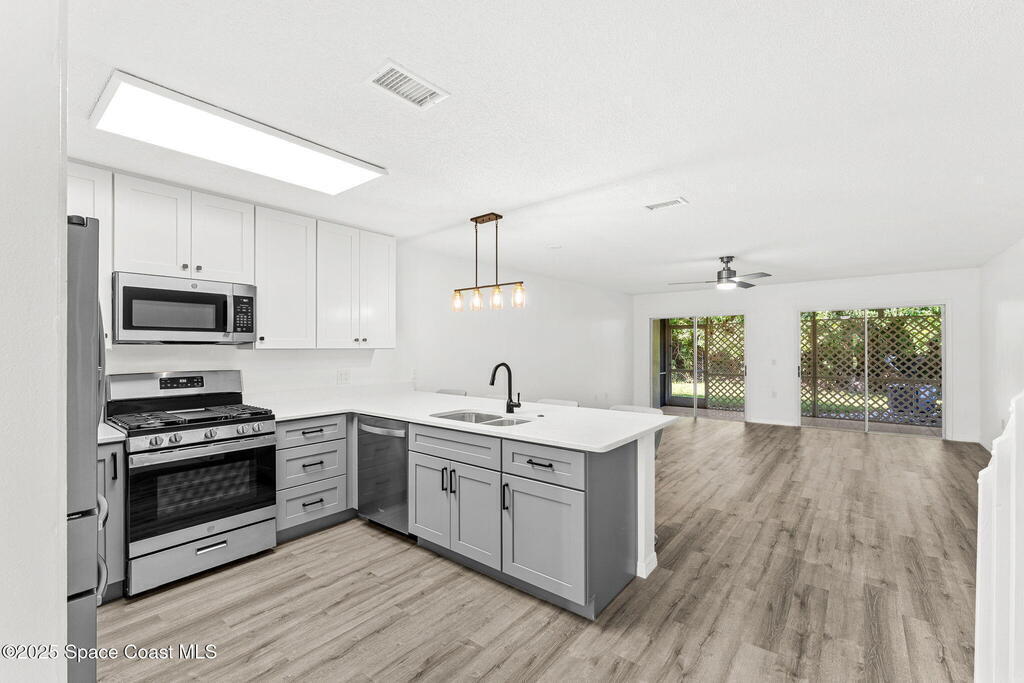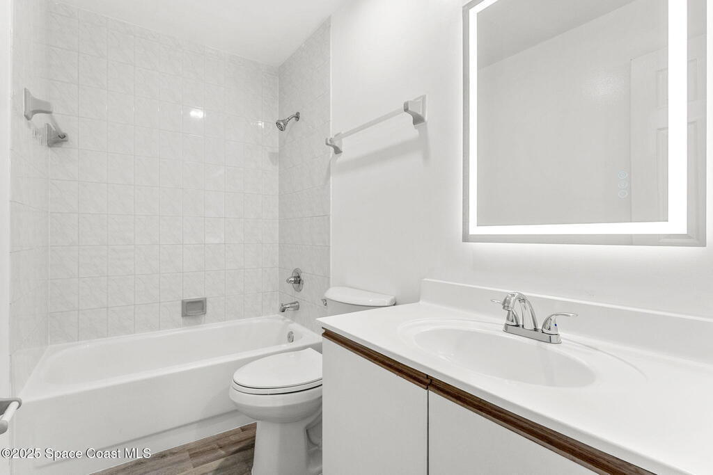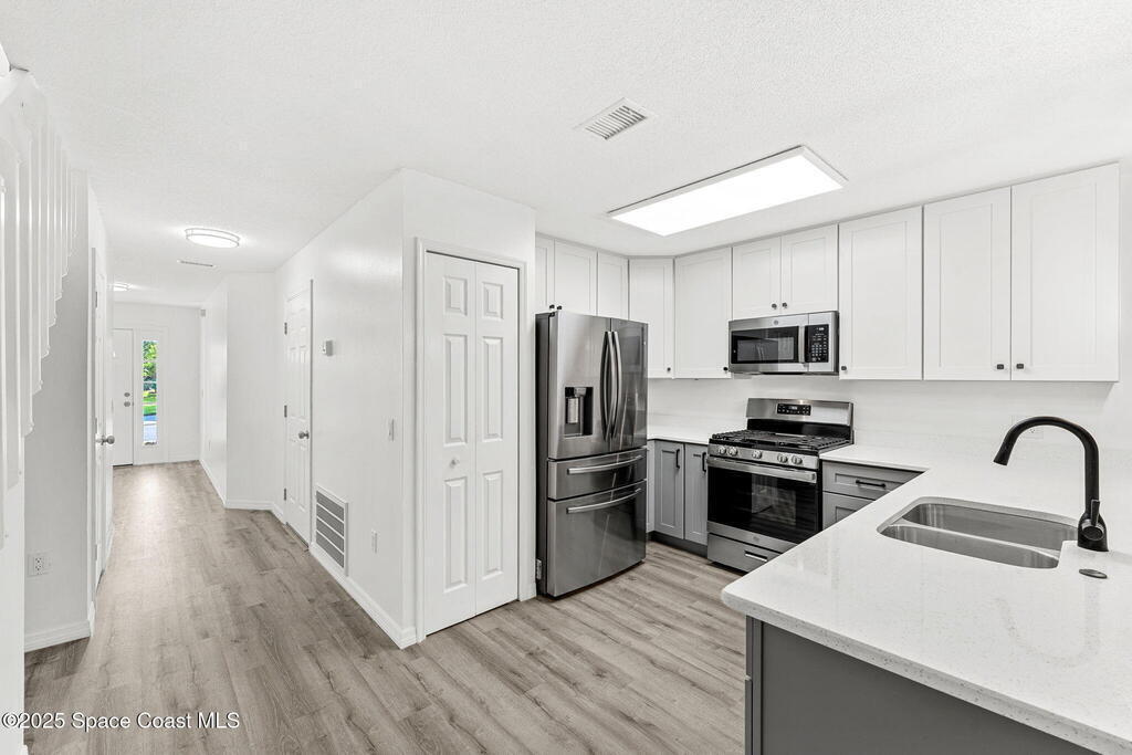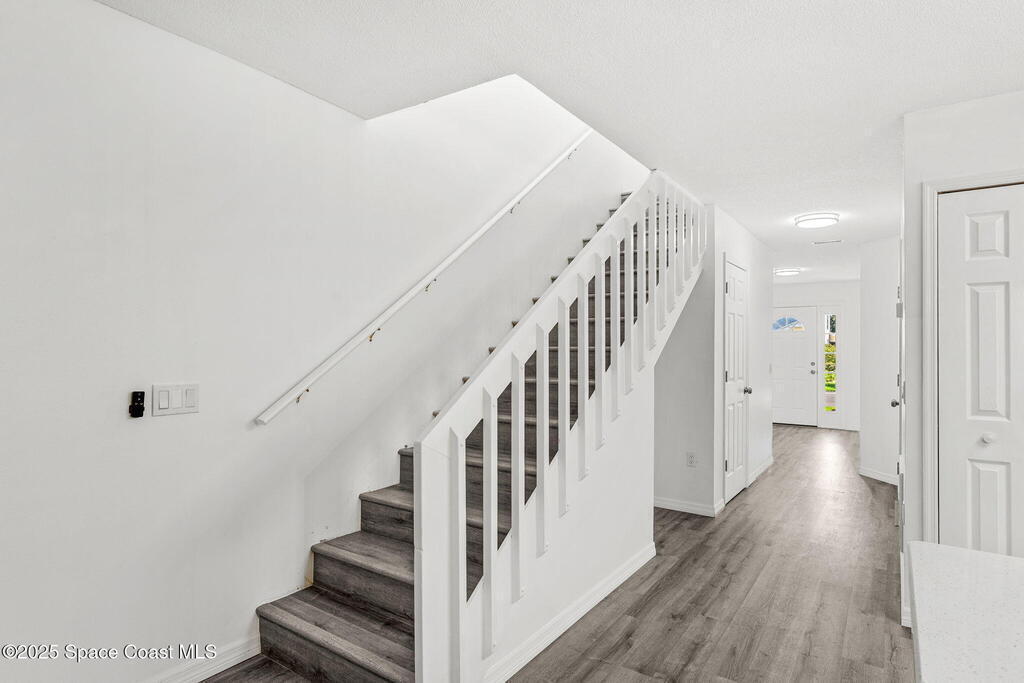 WELCOME HOME to this MOVE-IN ready and beautifully UPDATED 3-bedroom, 2.5-bathroom townhouse located in the heart of Rockledge, This spacious residence features BRAND NEW LVP flooring throughout, FRESH INTERIOR PAINT, updated light fixtures and a FULLY RENOVATED KITCHEN -complete with newer stainless steel appliances, shaker cabinets, and quartz countertops. The bathrooms also got a glow up with resurfaced bathtub, shower, counters and modern LED bathroom mirrors.The open-concept main floor is perfect for entertaining, while all bedrooms are privately tucked away upstairs for added comfort. The spacious primary suite includes two large closets, en-suite bath and private balcony. Two additional bedrooms-one with a private balcony share a full bath and offer plenty of space for family, guests, or a home office.The extra long garage has enough room for your car and all your toys-additional guest parking too! Community POOL!