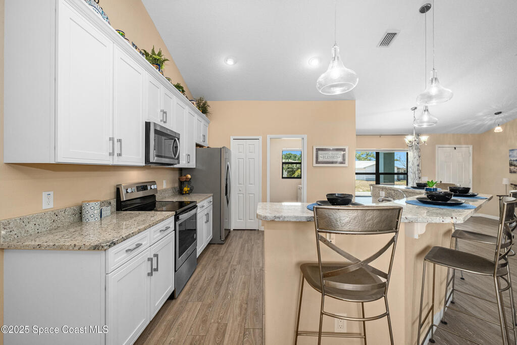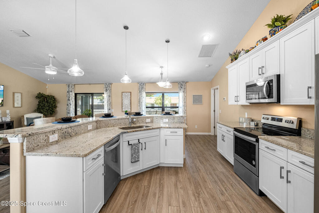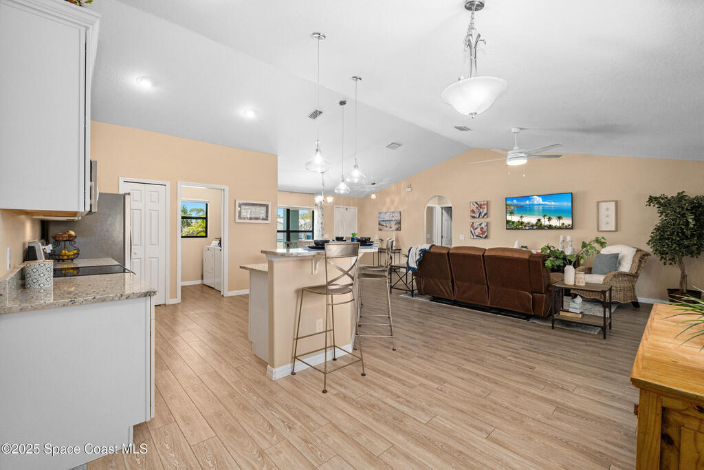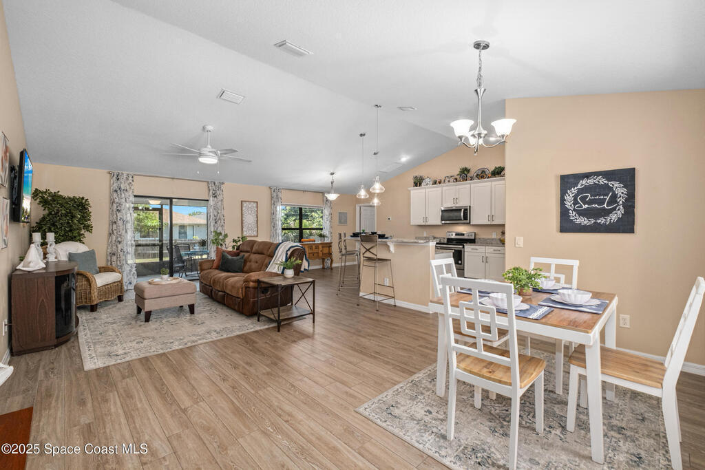 Why wait on a builder when you can have it all now? Built in 2019, this move-in-ready gem offers the crisp, modern feel of new construction with all the perks. Soaring vaulted ceilings, bright open living space, and a thoughtful split floor plan connecting three spacious bedrooms and two bathrooms. The custom eat-in kitchen steals the show with sleek quartz countertops, stainless steel appliances, and a breakfast bar. The primary suite is your private retreat, featuring a tray ceiling, walk-in shower, and generous closet space. Outside, enjoy nearly 1/4 acre of fenced yard--plenty of room to play, relax, or host weekend barbecues. The screened patio invites peaceful morning coffee or breezy evening downtime. With no HOA, bring your boat, RV, or other toys and truly make the space your own. A 2019 roof, brand-new gutters, and all major systems just 6 years old make this home the perfect blend of of comfort and peace. Move right in and start living your best life!