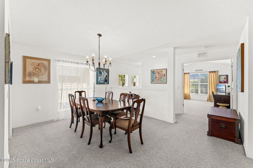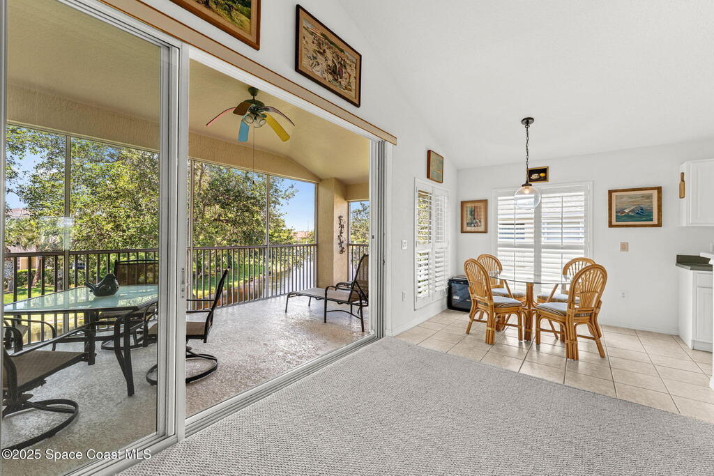 This 2 bedroom / 2 bathroom plus flex room unit is bathed in natural light and framed by soaring ceilings, the living area strikes a rare balance--expansive yet intimate. The open floorplan flows effortlessly onto an extended screened balcony, where birdsong greets you & tranquil water views offer daily serenity. Whether you're hosting holiday dinners or welcoming out-of-town guests, there's space to connect, reflect, & recharge. Overlooking the dining area, an 11x13 flex room with double doors expands the home's functional possibilities --a space that can be styled as a media room, library, office or enclosed to create a true third bedroom. The combination of tile & carpet underfoot adds comfort & texture, while a dedicated washer & dryer add function. This home has been more than a residence--it's been a place of peace, filled w/ laughter, quiet moments & a deep appreciation for the well-maintained Carriage Park community.