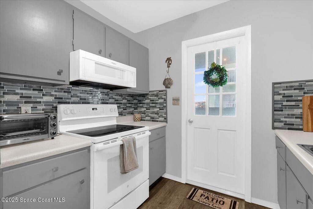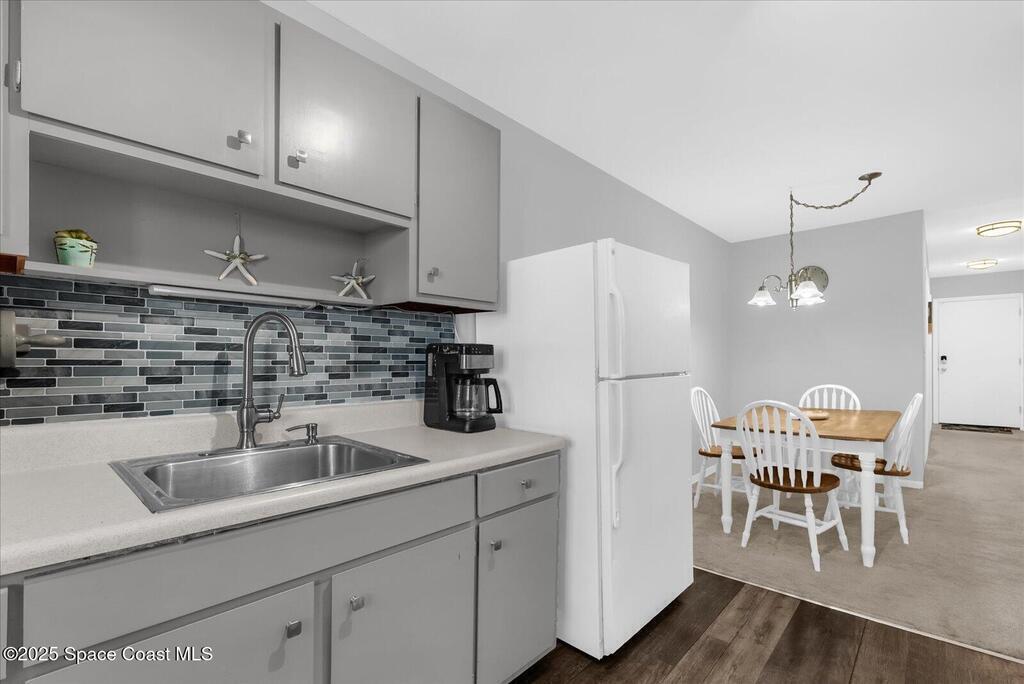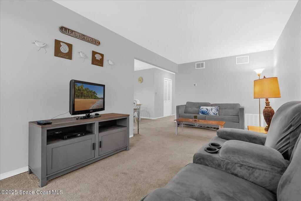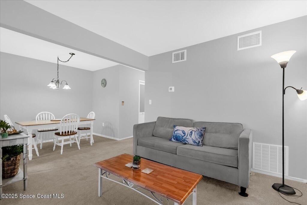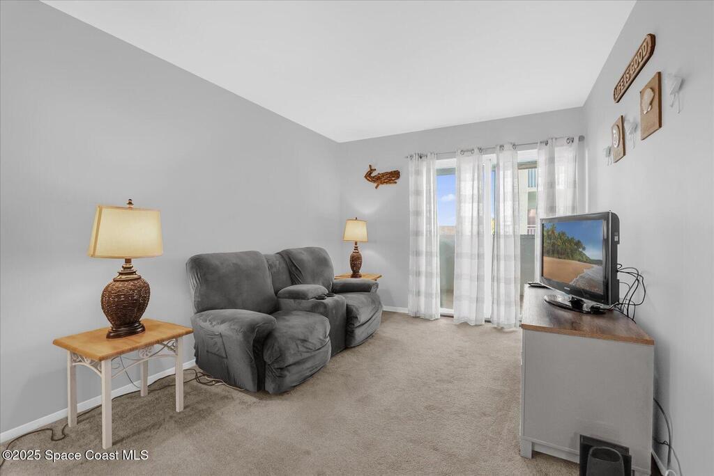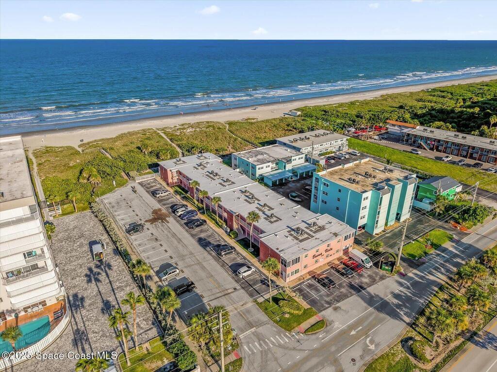 Step into serenity with this beautifully updated 1-bed, 1-bath condo nestled on the sandy shores of Cocoa Beach--where the beach is literally just steps away. Located in a friendly, oceanfront community, Unit #32 blends modern comfort with relaxed coastal living. Inside, enjoy carpet, tile, and laminate flooring, a stylish galley kitchen with gray cabinetry, white appliances, and a sleek backsplash. The cozy dining area flows into a bright living room with sliding glass doors leading to a screened-in porch--perfect for relaxing bug-free. The bedroom features a built-in closet, while the bathroom includes a shower/tub combo and gray vanity. A laundry room with built-in shelving adds convenience. Whether sipping morning coffee on the porch or enjoying sunset beach strolls, this charming condo offers effortless beachside living. Ideal as a full-time home, vacation getaway, or investment. Welcome home--where the ocean is your backyard.