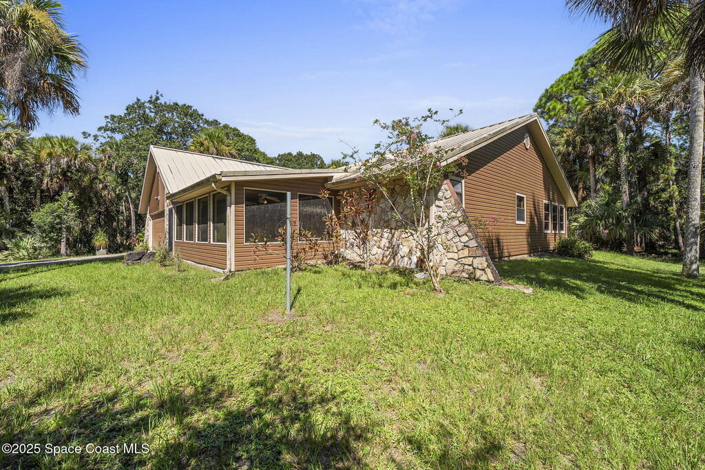 Escape to the country life you've always dreamed of in this 3 bed, 2.5 bath home with potential to personalize it to fit you perfectly! The home is situated on 1 acre and includes 2 additional 1 acre lots for a total of 3 acres complete with a front yard pond! It is tucked away just off of State Road 524 with I-95 and SR 520 near by for convenient access to Cocoa Village, Kennedy Space Center, Orlando, and more; but it still feels like your own private space. Inside, enjoy over 2,200 square feet of living area and a cozy wood-burning fireplace. Metal roof and an attached 2-car garage along with a detached 1-car garage offer durability and flexibility. No HOA. Mature trees provide natural privacy. The pond, that's your morning coffee view. Come enjoy the peace, and freedom of rural Florida living and zoning to bring your horses: up to 4 per acre!Schedule your personal showing today!
