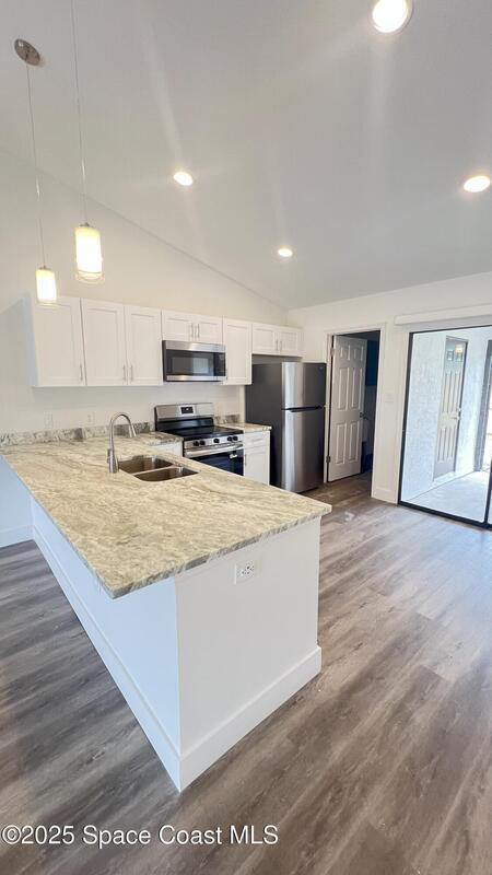 Fully renovated single story 2 bedroom 2 bath townhouse. The end-unit townhouse is located in a quiet small townhouse community. It has a brand-new kitchen featuring white shaker cabinets, premium quartz countertops, and all stainless steel appliances. Both bathrooms have been completely transformed with new fixtures, vanities, shower enclosures, and toilets. The townhouse features new luxury vinyl plank flooring seamlessly throughout the entire home, fresh lighting fixtures, ceiling fans, and window treatments. The level 5 smooth ceilings and newly painted interior and exterior add a polished touch, while new exterior doors, new locks, and new handlesets throughout ensure security and style. Relax on the large screened-in back porch while enjoying the privacy of a generous size fenced-in back and side yard. A spacious laundry room with a deep basin laundry sink and cabinets and a large exterior storage room provide ample space for your needs.