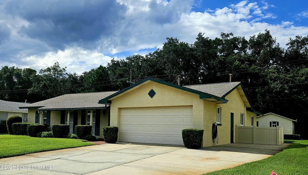 OPEN FLOOR PLAN! This well-maintained 3-bedroom, 2-bathroom home is move-in ready and awaiting it's next owners, perfect for both family living and entertaining. Featuring a large living area that flows seamlessly into the dining and kitchen spaces, this home exudes comfort and functionality. The living room offers plenty of space for relaxation and gatherings. Large master suite features a bathroom and includes large sliders that lead directly to the screened porch. The two additional bedrooms are perfect for family, guests, or a home office. Step outside and enjoy the serenity of your screen porch & private yard. A separate shed provides additional storage, keeping your outdoor area neat and organized. For peace of mind, the home includes a Generac generator. Enjoy the Florida sunshine year-round from the screened porch, the perfect spot for morning coffee or evening relaxation. WATER HEATER IS LEASED FROM GAS COMPANY