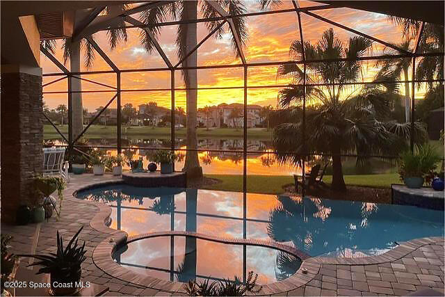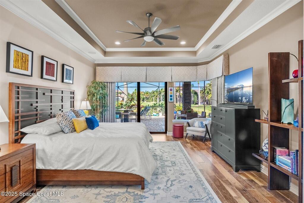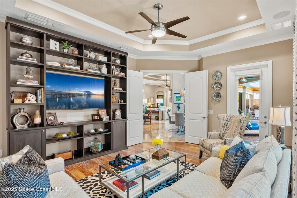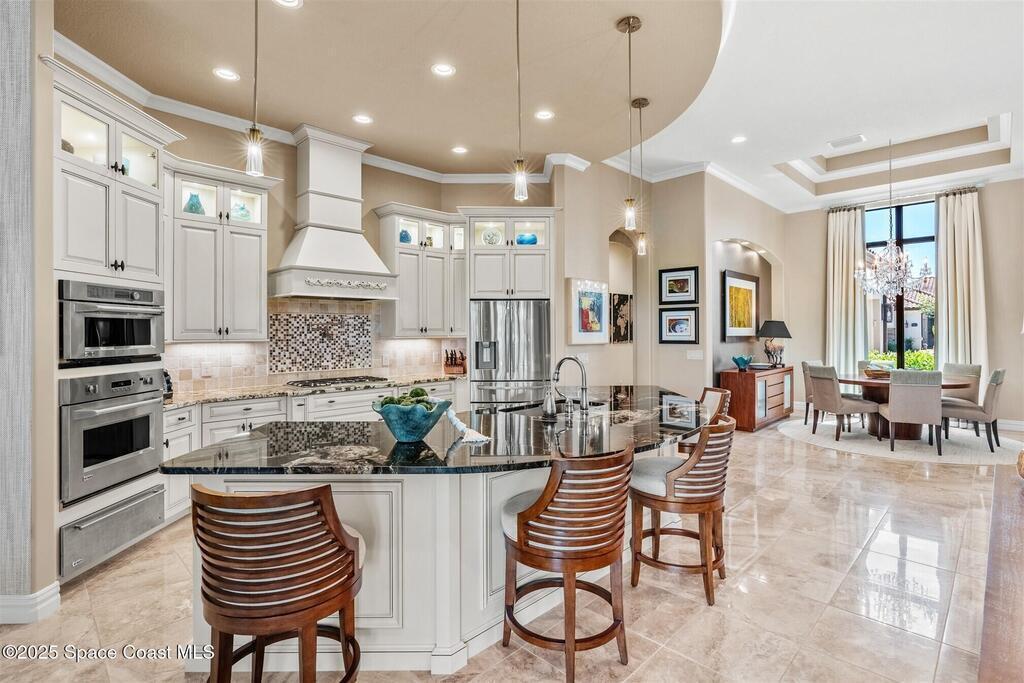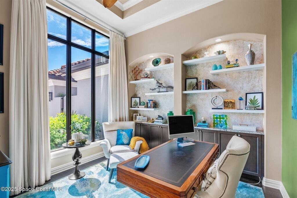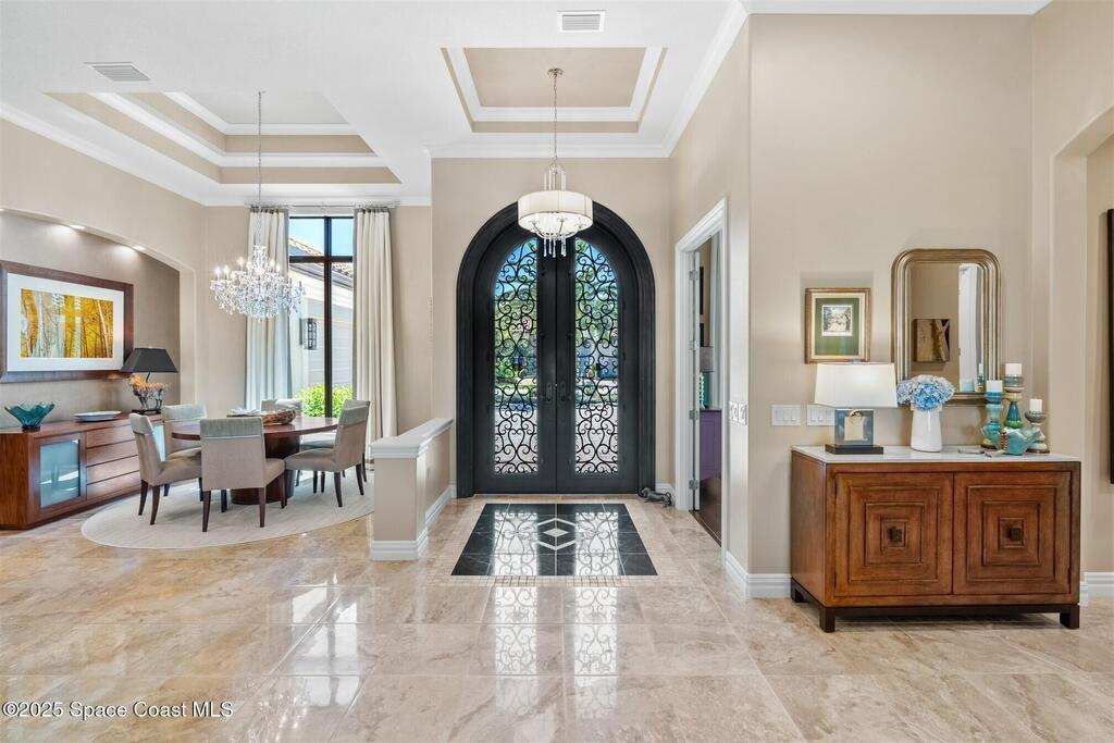 72-Hour Kick Out Clause in Affect.Welcome to the epitome of luxury living in the exclusive, gated Wyndham at Duran. This custom home by Brevard's renowned builder offers quiet luxury and an exceptional lifestyle set on a rare half-acre estate of 2 lots (with plenty of available land to build a casita, additional garage, or expand your home) within the sought-after Duran Golf Course community. The great room floor plan features four bedrooms, a private office, dining room, and pool bath on a picturesque waterfront cul-de-sac lot. The impressive curb appeal is enhanced by an expansive motor court and stately 10' Abbey iron double doors. Inside, the spacious great room has breathtaking quad sliders that reveal panoramic views of the infinity-edge pool, tranquil lake, golf course, and unforgettable sunsets. The home is filled with bespoke touches: designer window treatments, lighting, and fans; luxury wallpaper and...