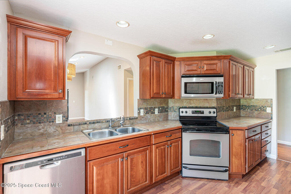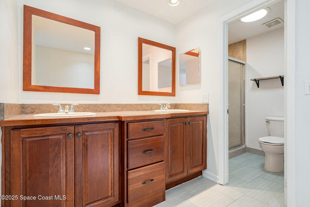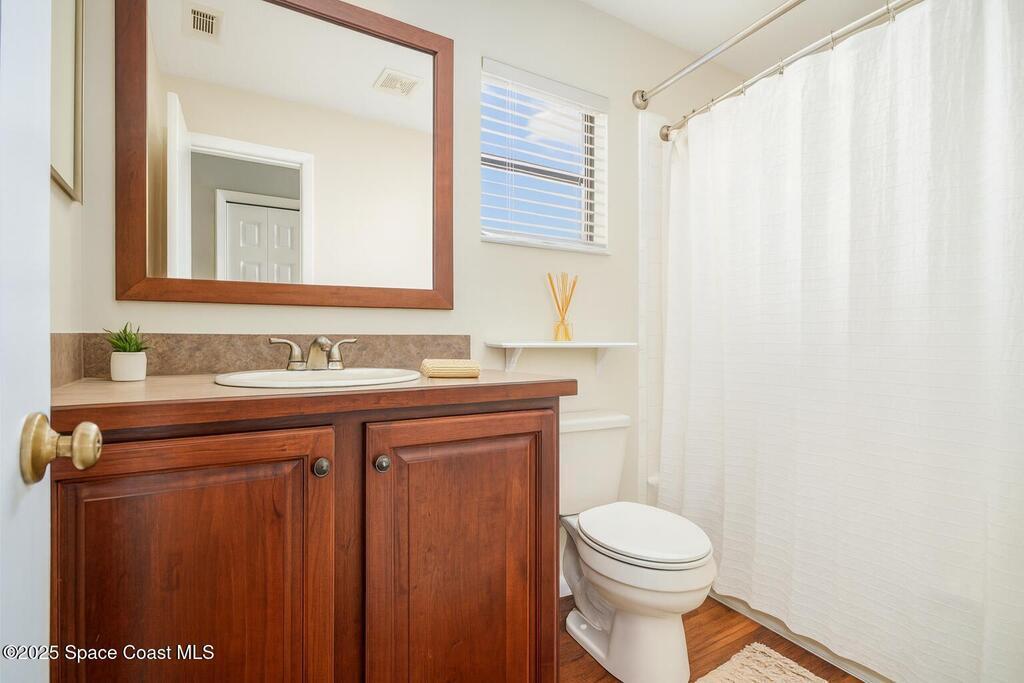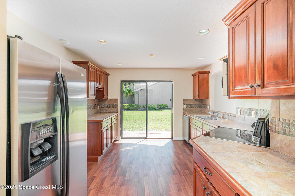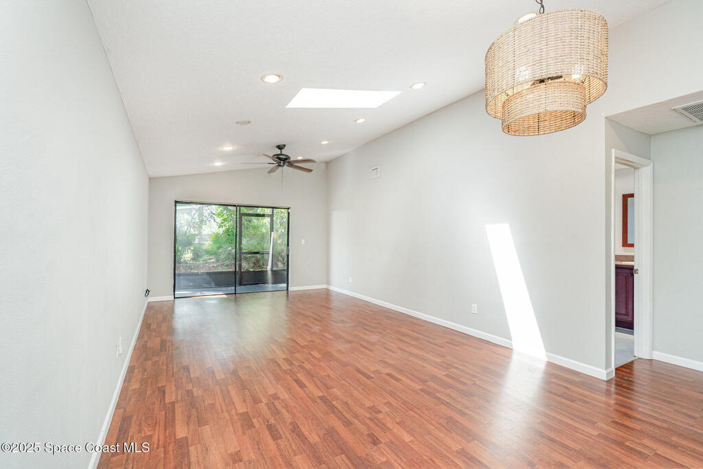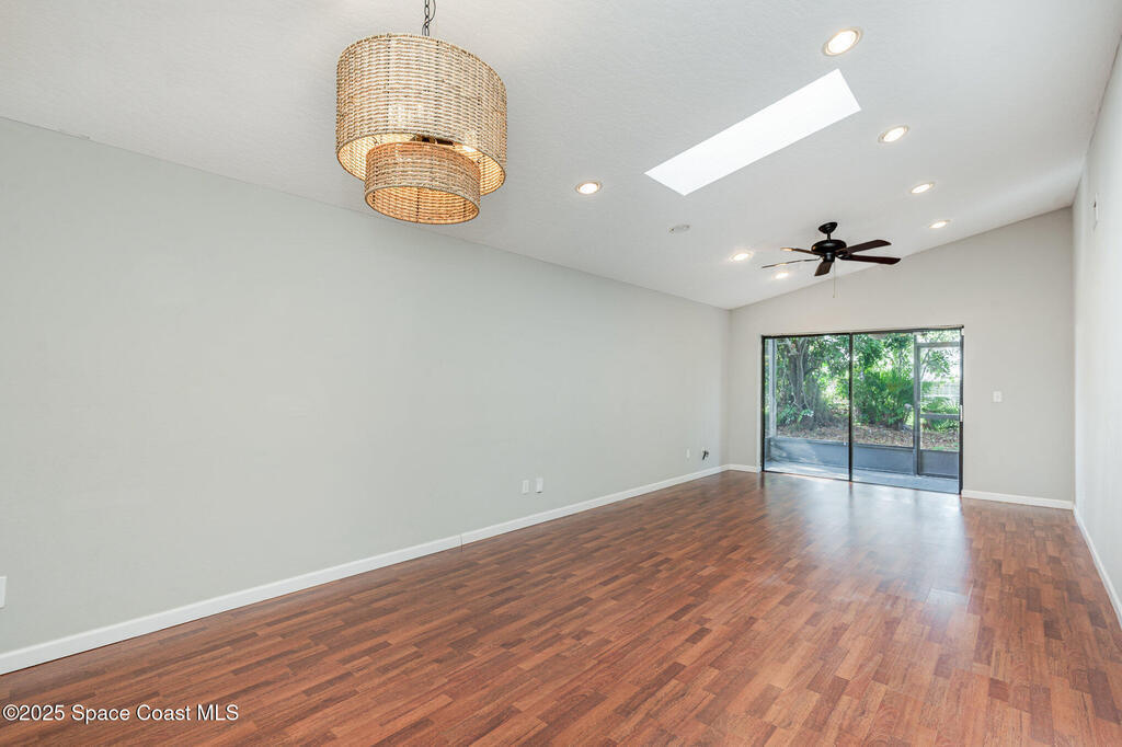 *** BRAND NEW HVAC*** Don't miss the opportunity to tour this stunning 3-bedroom, 2-bathroom residence, meticulously maintained and thoughtfully updated! The home boasts upgraded cabinetry in the kitchen and bathrooms, complemented by beautifully coordinated countertops and a stylish backsplash in the kitchen. Enjoy the spaciousness of vaulted ceilings in the living and dining areas, as well as in the main bedroom, where skylights fill the room with natural light, creating a warm and inviting atmosphere. The main bedroom has a large bathroom with double sinks. The house has a spacious 2 car garage where the washer and dryer are located. Unwind on your private back porch, take a stroll to the community pool for a refreshing dip, or enjoy the serene surroundings of this desirable neighborhood. Ideally situated near the community pool, clubhouse, and tennis courts. Enjoy easy access to shopping, schools, Wickham Park, the King Center, and Eastern Florida State College