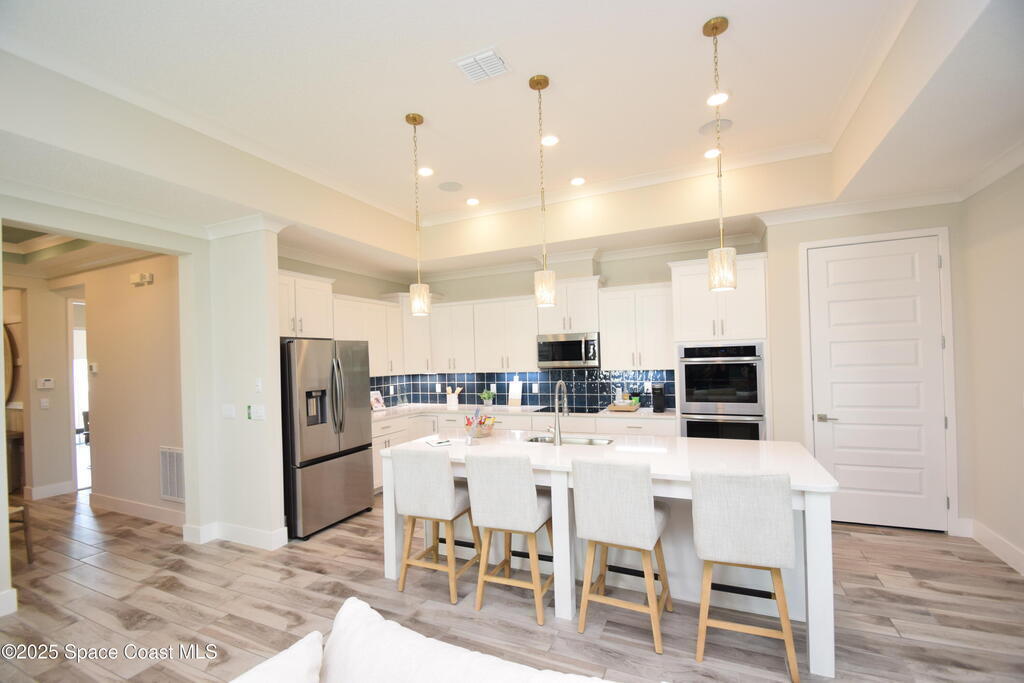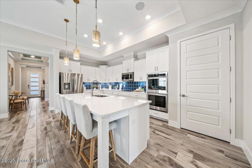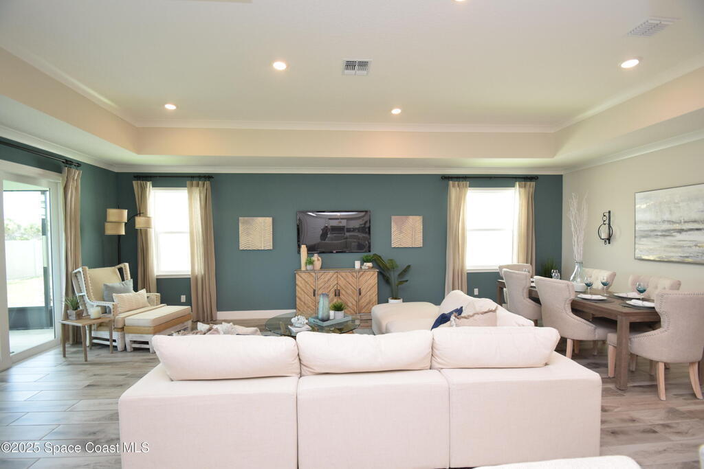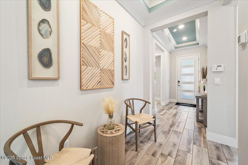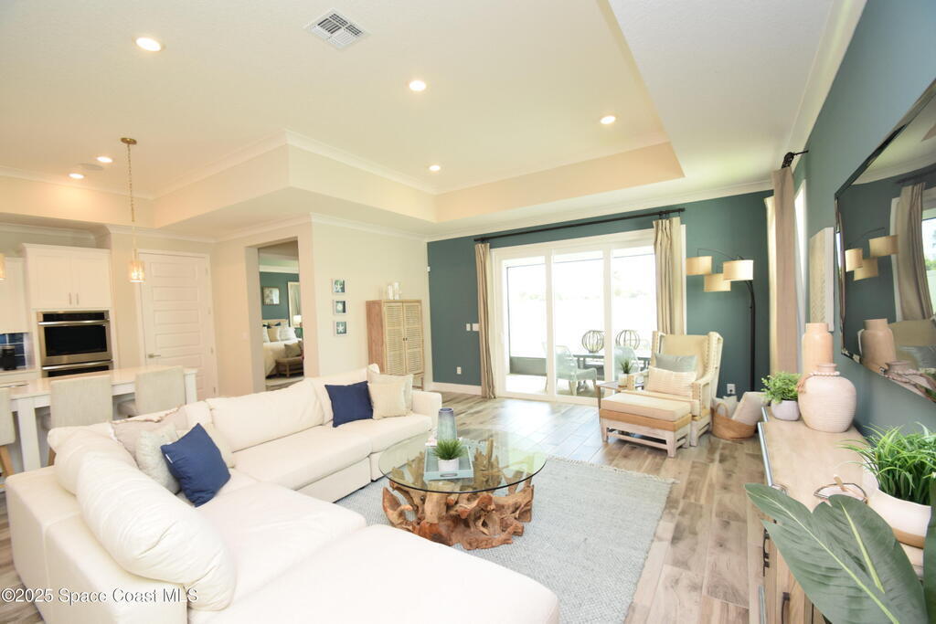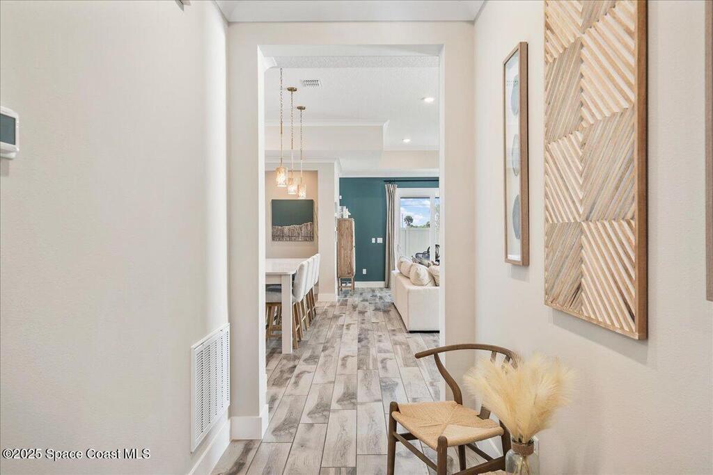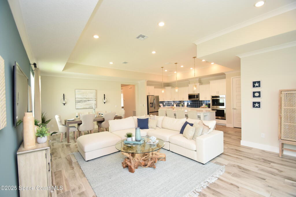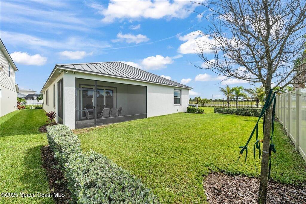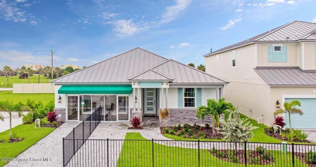 Brand-New Atlantis Model - Only 800 feet from the beach. New Value Price... Offered at an amazing value of: $699,900. This 4 bed, 2 bath, 2,154 sq ft home in The Vue at Satellite Beach blends modern design with coastal living. Step inside to 9'4'' ceilings, crown molding, an open layout, and an 8' glass front door. The gourmet kitchen features quartz counters, an oversized island, shaker cabinetry, and stainless appliances including a double oven. The owner's suite and upgraded bedrooms pair with tile in main areas and carpet in bedrooms. Outdoors enjoy a screened patio, paver lanai and driveway, metal roof, and room for a pool. Built with hurricane impact windows, smart home technology, and a builder's 2-10 warranty. Gated community includes a pool, low $88 HOA, no CDD fees, city water/sewer, irrigation well, and no flood zone for lower insurance. Completion Dec 2025 with $10K toward closing costs plus 3-year rate protection from preferred lender.