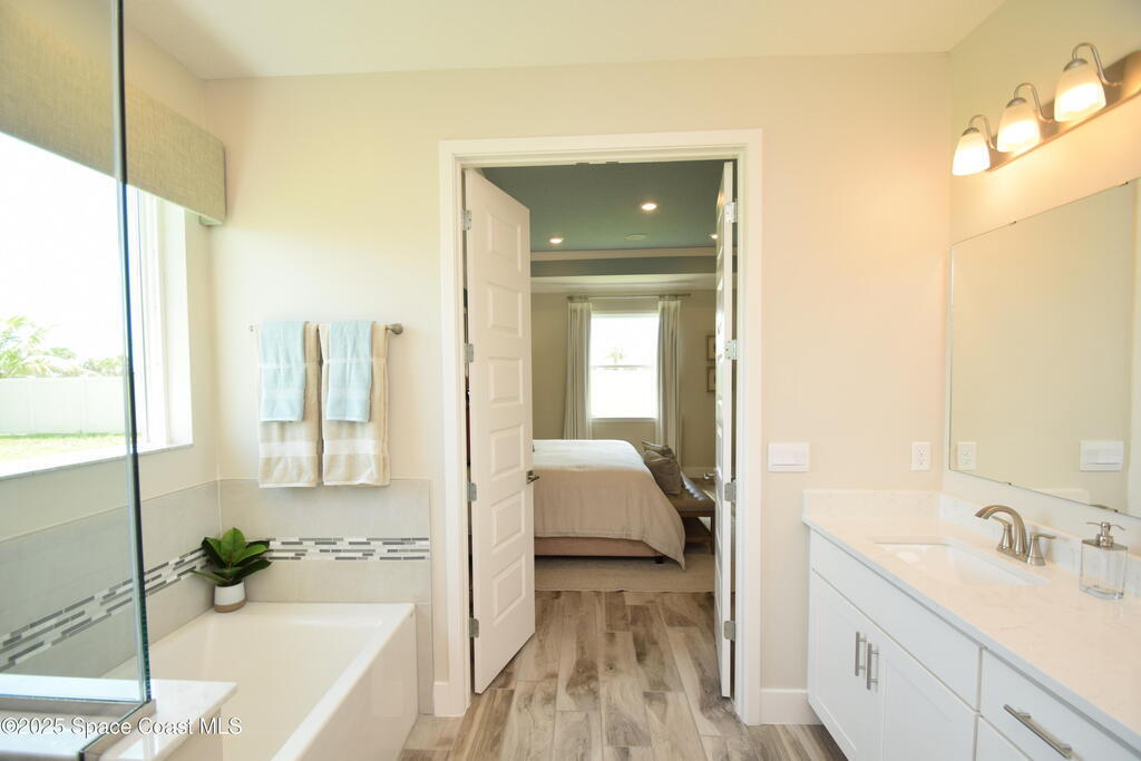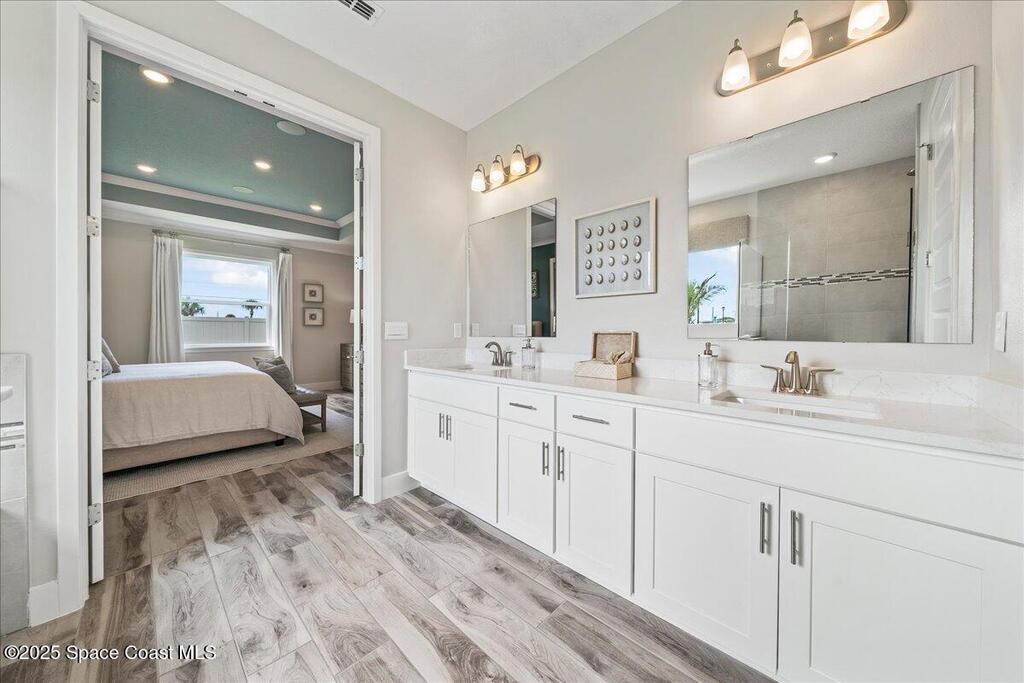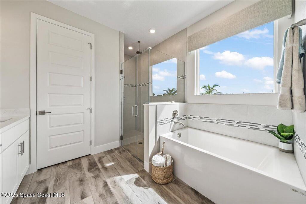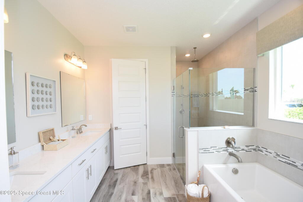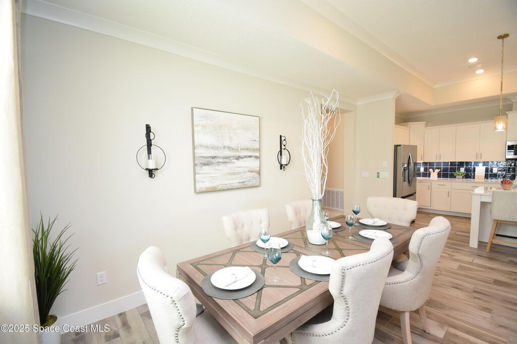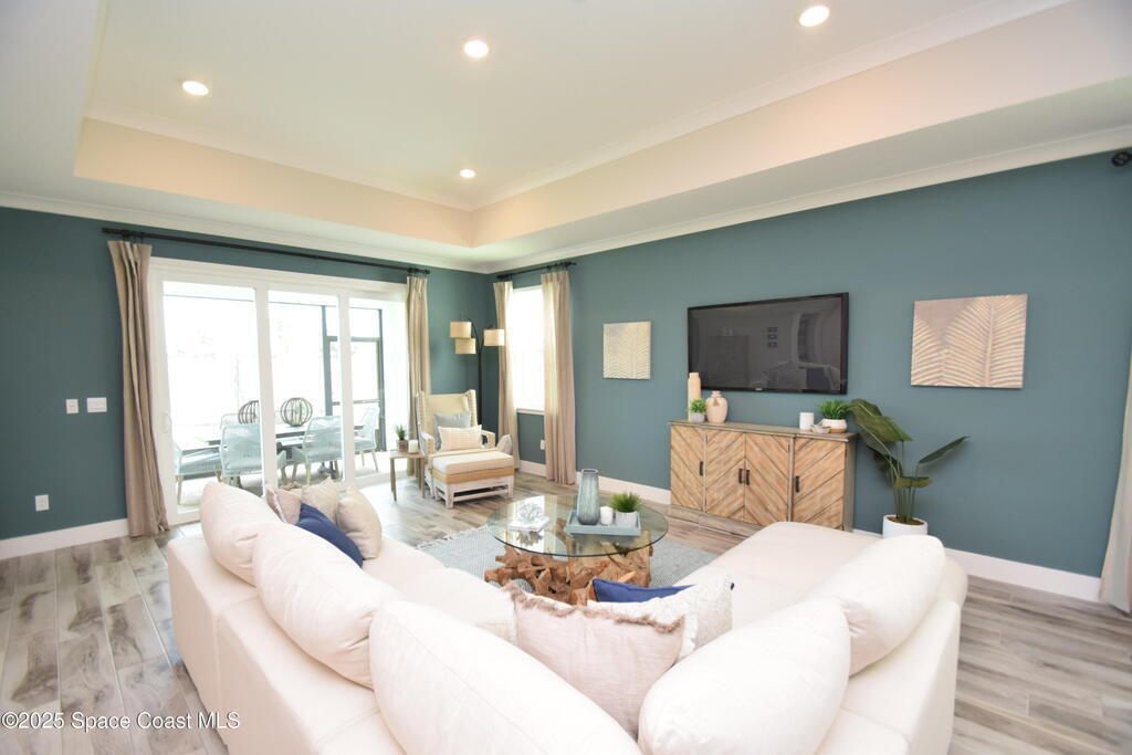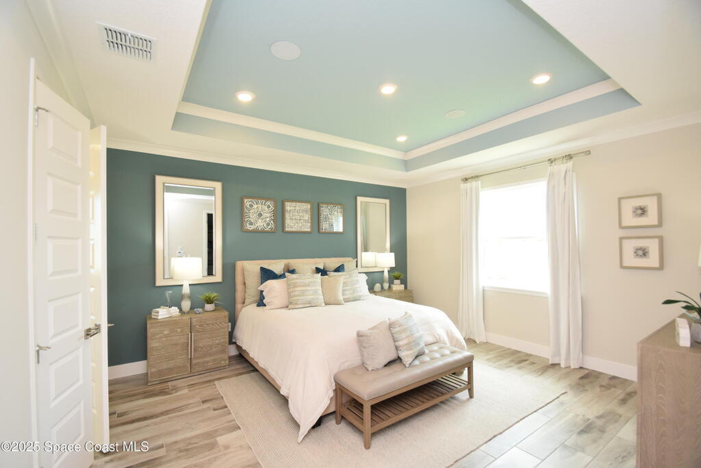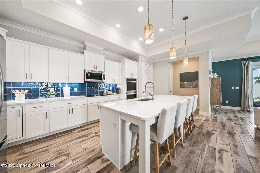 Brand-New Atlantis Model - Only 800 feet from the beach. New Value Price... Offered at an amazing value of: $699,900. This 4 bed, 2 bath, 2,154 sq ft home in The Vue at Satellite Beach blends modern design with coastal living. Step inside to 9'4'' ceilings, crown molding, an open layout, and an 8' glass front door. The gourmet kitchen features quartz counters, an oversized island, shaker cabinetry, and stainless appliances including a double oven. The owner's suite and upgraded bedrooms pair with tile in main areas and carpet in bedrooms. Outdoors enjoy a screened patio, paver lanai and driveway, metal roof, and room for a pool. Built with hurricane impact windows, smart home technology, and a builder's 2-10 warranty. Gated community includes a pool, low $88 HOA, no CDD fees, city water/sewer, irrigation well, and no flood zone for lower insurance. Completion Dec 2025 with $10K toward closing costs plus 3-year rate protection from preferred lender.