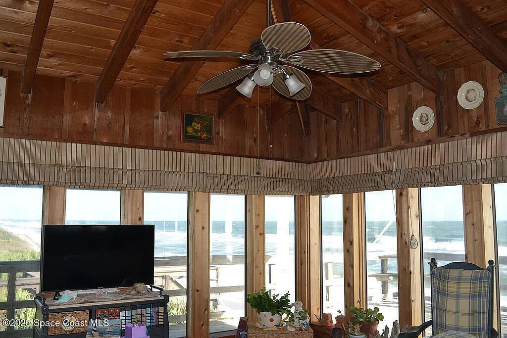 WELCOME HOME to your oceanfront retreat in highly sought-after South Melbourne Beach! This two-story single-family home sits on 0.48 acres of prime oceanfront land. NEW ROOF-This property is a diamond in the rough, ready for your vision. With some TLC, it could be beautifully transformed through thoughtful renovations and updates -- or take advantage of the ample space to design a new structure. The home includes a private guest suite (ideal for visitors, in-laws, or rental potential) plus a one-car garage. Upstairs features hardwood floors, cathedral beam ceilings, a floor-to-ceiling fireplace, and wraparound windows with panoramic ocean views. Expansive overhang decks provide shaded outdoor living -- perfect for summer relaxation. South Melbourne Beach is known for its quiet, peaceful atmosphere, ideal for disconnecting and getting away from it all -- yet it's still conveniently close to shopping, hospitals, the airport, and more.