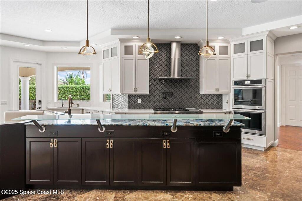 Welcome to 154 Lansing Island Drive, a residence that embodies the very best of waterfront luxury in Brevard County's most prestigious gated community. Lansing Island is known for its exclusivity, guarded gatehouse, and iconic drawbridge entry, yet it is this estate's extraordinary setting that truly sets it apart. Resting on one of the larger lots on the island, measuring 1.19 acres, the property enjoys an unrivaled position with nearly 300 feet of water frontage, capturing almost 180 degrees of water views.This phase of Lansing Island was originally reserved as the developer's lots, chosen for their premier size and setting. While most homes on the island rest on smaller parcels with limited outdoor space, this estate offers a rare abundance of backyard grounds. Expansive lawns shaded by a central oak create a true estate feel, something seldom found here, offering the ideal setting for entertaining on any scale.