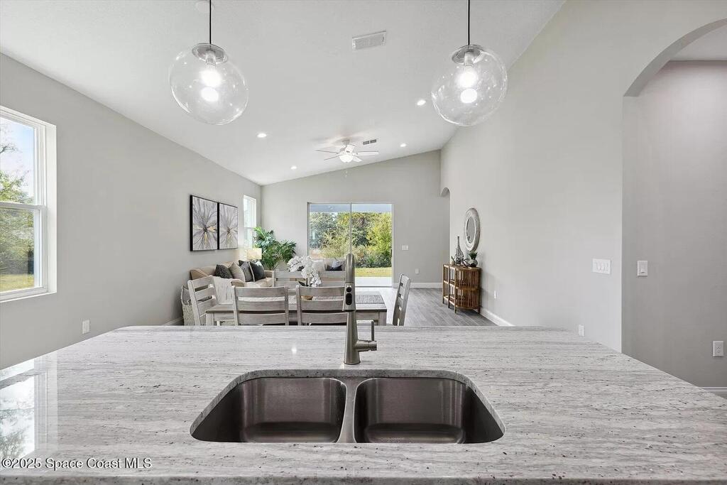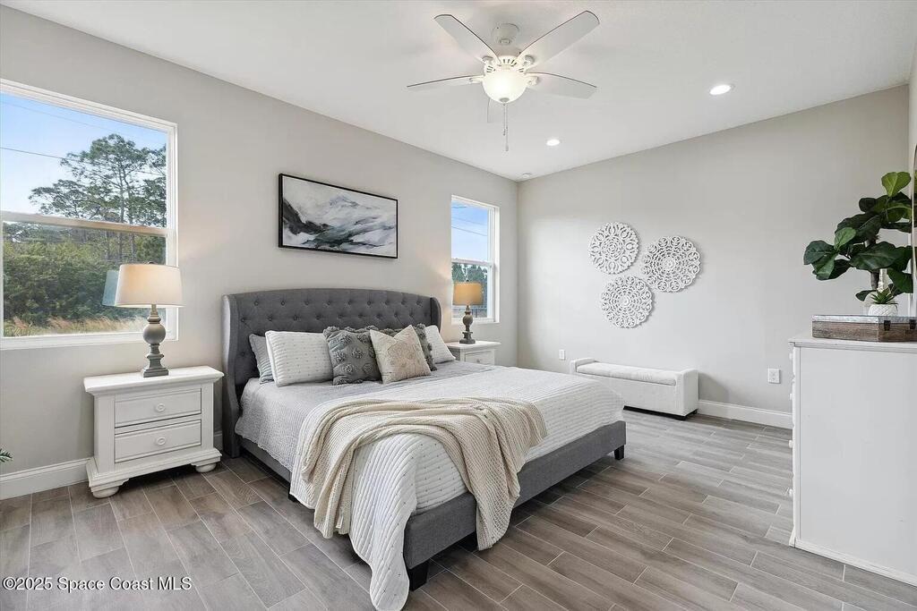 NO CLOSING COST LOANS AVAILABLE. One or more photo(s) has been virtually staged--New Construction. This Luxurious 4-bedroom, 2 Bath Property is exquisitely built with all of the upgrades nestled in the heart of Palm Bay. Inside you will find a wonderfully open floor plan perfect for gatherings and entertaining. The capacious Chef's Kitchen is stylishly equipped with a prep island, solid wood cabinets, stainless steel appliances and ample storage. The contemporary living space is bursting with natural light and a flowing layout that is inviting and relaxing. Luxuriate in the vast Primary Suite that offers a collection of modern conveniences. This beautiful house is full of INCLUDED upgrades: solid wood soft close cabinets in the kitchen and in the bathrooms, luxury vinyl plank flooring (no carpet), and floor-to-ceiling tiles in the showers, bathroom niches, granite countertops in the kitchen and baths, 9'4'' ceilings, 8-foot doors and an electric garage with controls.