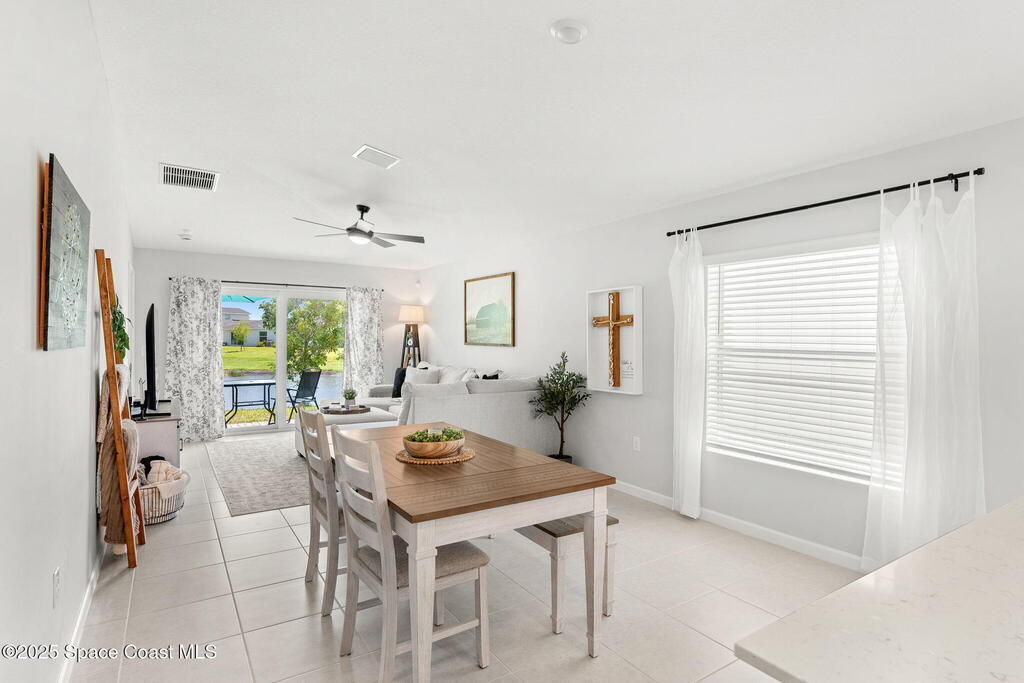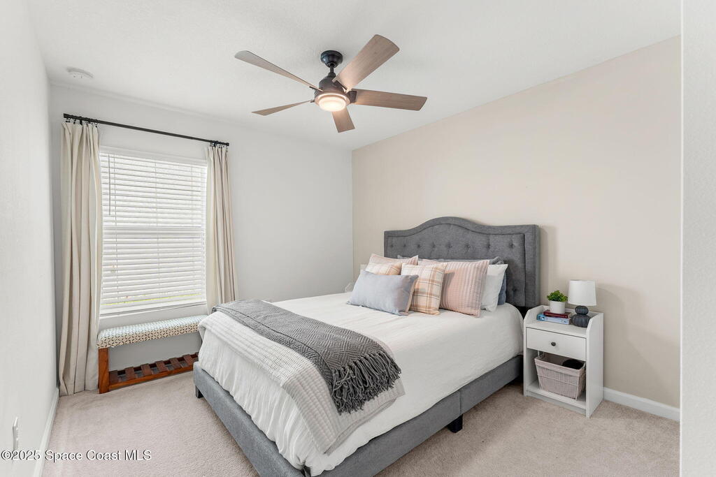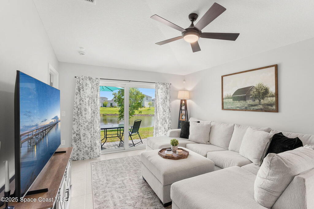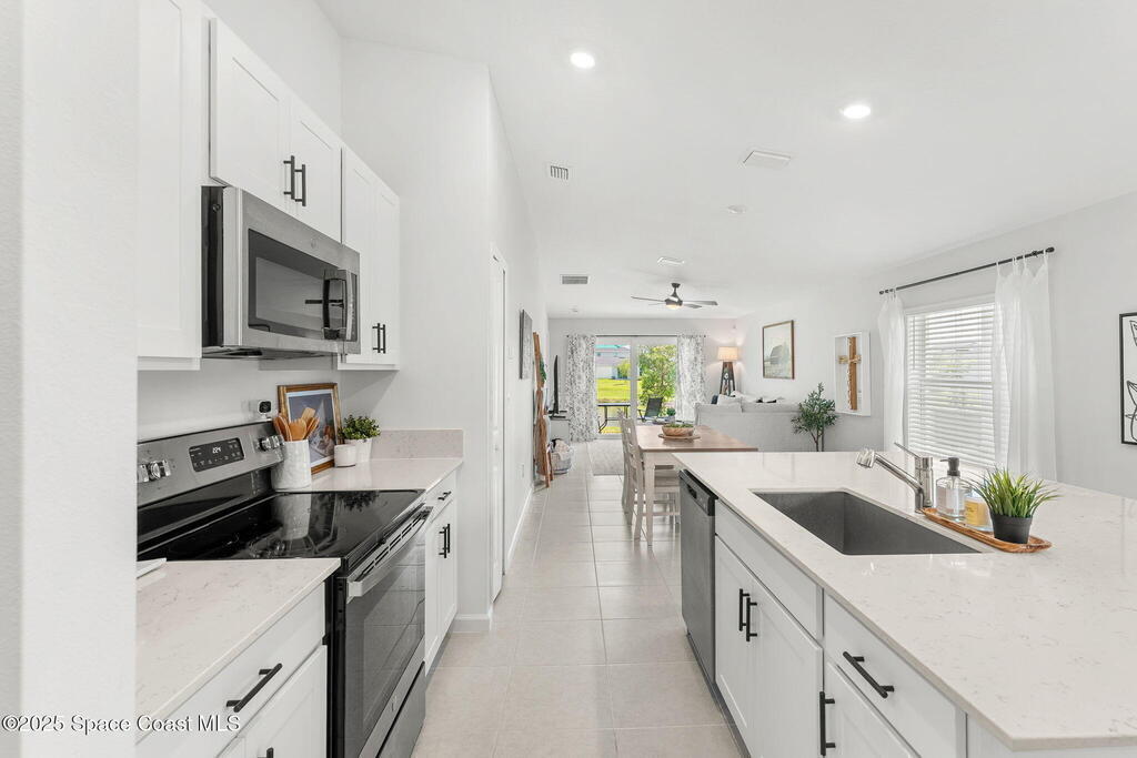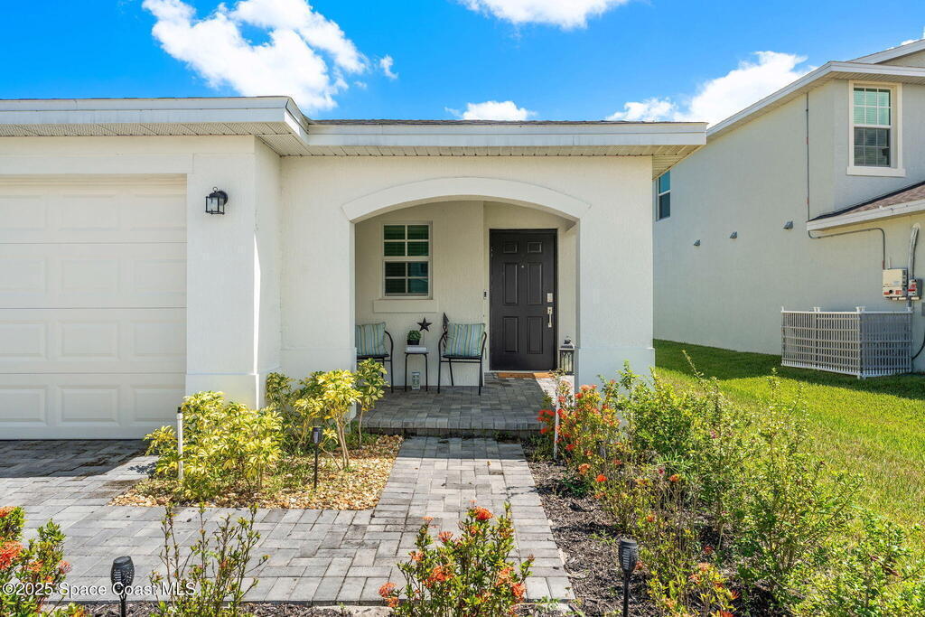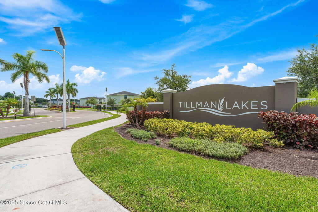 Discover this stunning, like-new home in the desirable gated community of Tillman Lakes in Palm Bay! Built in November 2023, this meticulously maintained 3-bedroom, 2-bath residence blends modern design, comfort, and thoughtful upgrades throughout its 1,451 sq. ft. of living space.Step inside to an open and inviting split floor plan that's perfect for everyday living or entertaining. The chef-inspired kitchen is a true centerpiece, featuring quartz countertops, a large farmhouse sink, stainless steel appliances, and upgraded hardware on the kitchen and bath cabinets.You'll love the hurricane-impact windows for peace of mind and energy efficiency, Venetian blinds throughout, new ceiling fans, and a custom wood wall feature in the primary bedroom adding warmth and style. The living area and bathrooms have freshly painted accents, bringing a bright and modern touch.Additional highlights include stylish tile and plush carpet flooring, a spacious 2-car garage with storage,