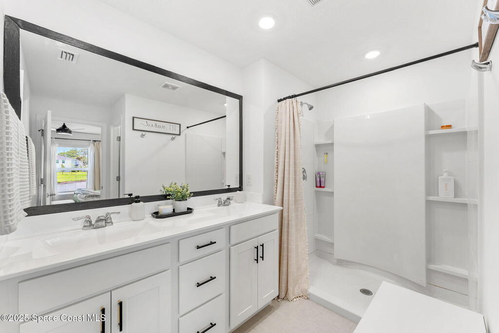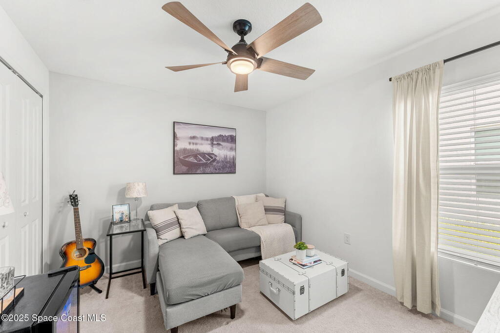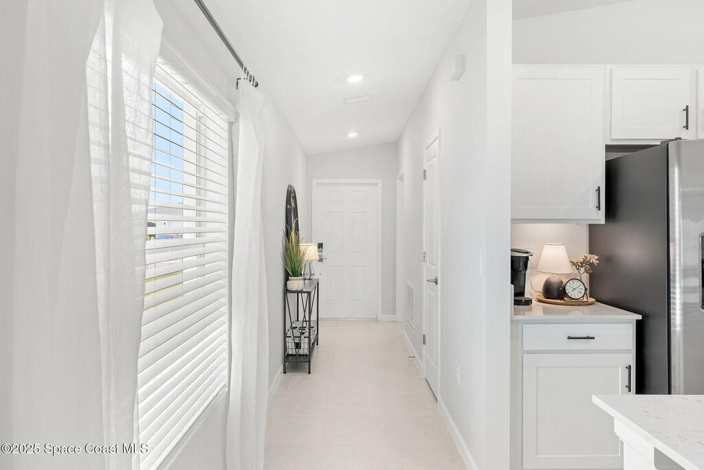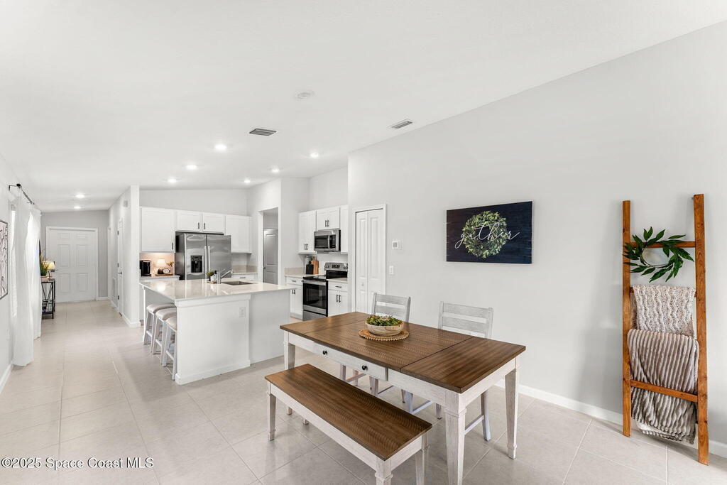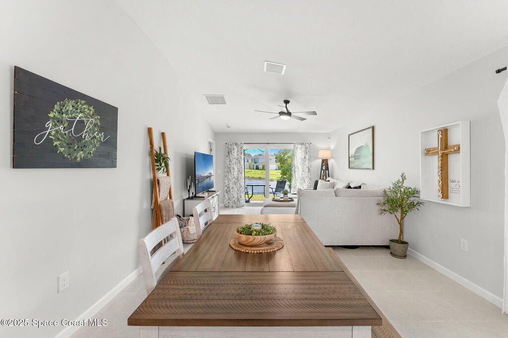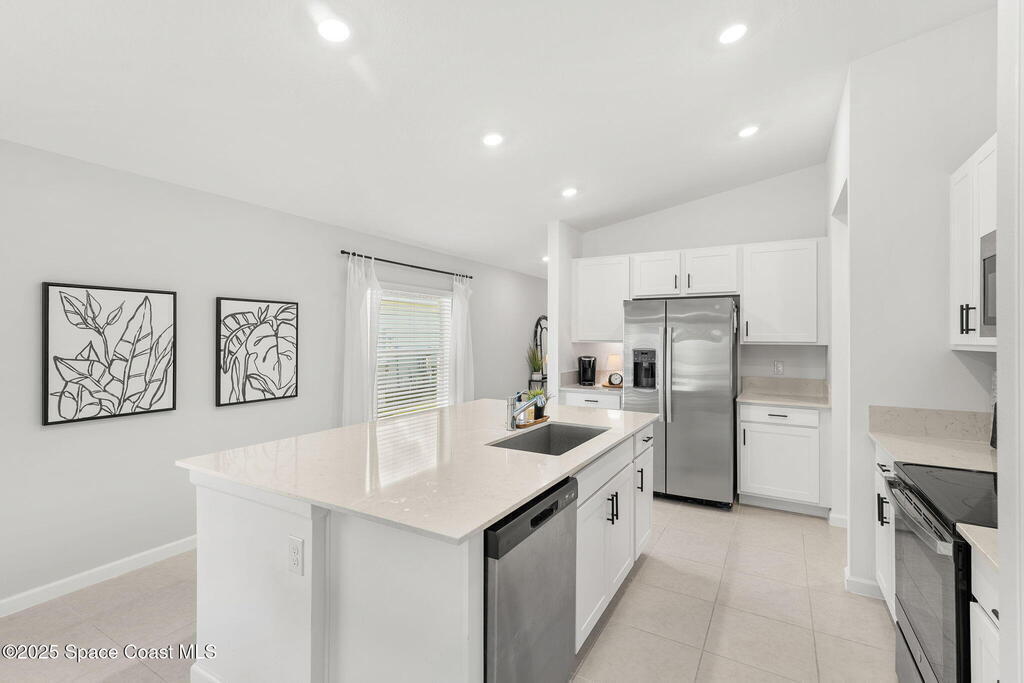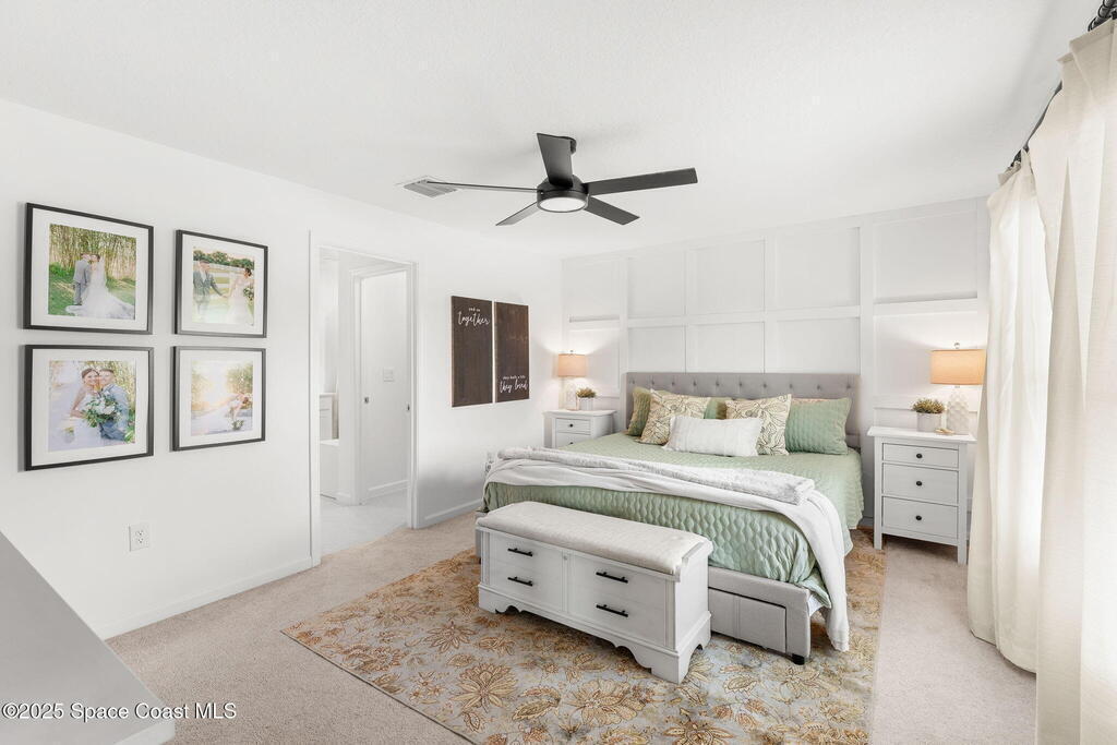 Discover this stunning, like-new home in the desirable gated community of Tillman Lakes in Palm Bay! Built in November 2023, this meticulously maintained 3-bedroom, 2-bath residence blends modern design, comfort, and thoughtful upgrades throughout its 1,451 sq. ft. of living space.Step inside to an open and inviting split floor plan that's perfect for everyday living or entertaining. The chef-inspired kitchen is a true centerpiece, featuring quartz countertops, a large farmhouse sink, stainless steel appliances, and upgraded hardware on the kitchen and bath cabinets.You'll love the hurricane-impact windows for peace of mind and energy efficiency, Venetian blinds throughout, new ceiling fans, and a custom wood wall feature in the primary bedroom adding warmth and style. The living area and bathrooms have freshly painted accents, bringing a bright and modern touch.Additional highlights include stylish tile and plush carpet flooring, a spacious 2-car garage with storage,