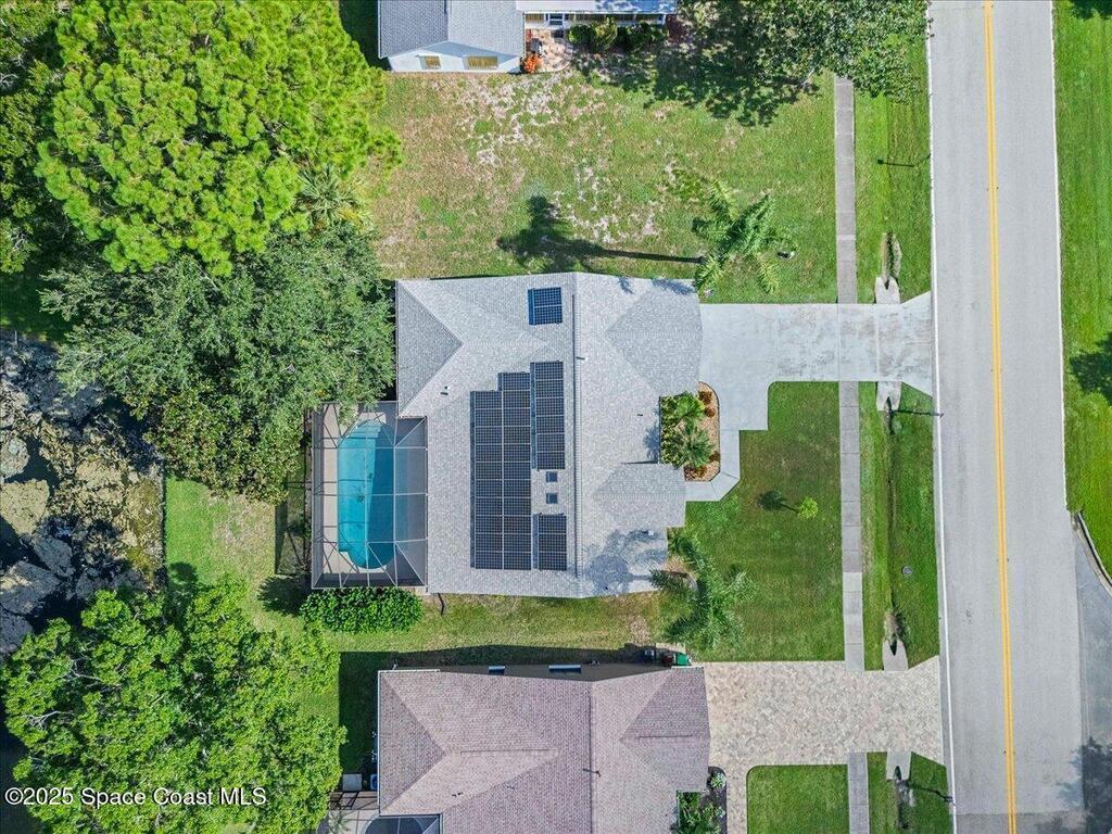 Beautiful lakefront pool home, lots of room with Vaulted Ceilings with two Skylights in the formal living room. upgraded with whole house Solar Panels- Paid in Full. EV Charger, New Roof in 2023, Interior paint in 2024, new luxury carpet in the bedrooms, New Kitchen Cabinets with soft close drawers and pull-out shelving, Granite counter tops, New pool salt system, New gas stove and new A/C and nest thermostat, 2025. the kitchen has Stainless Steel appliances and tile backsplash. The Master Bedroom has two Walkin closets. Natural Gas,The large 11 X 25 ft. patio with vinyl sliding doors is perfect for entertaining and overlooks the fully screened in pool. Conveniently located by shopping, Golfing, the Melbourne Airport, I-95 and just 15 minutes from the Beach. Your only an hour from the Orlando attractions like Disney World, Universal studios, Seaworld and more.