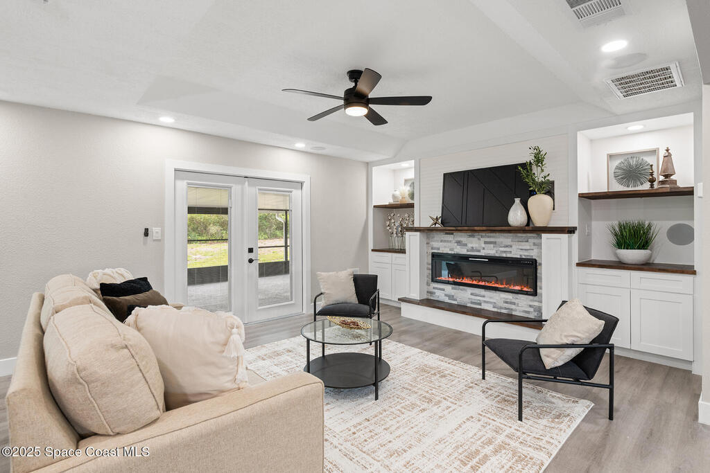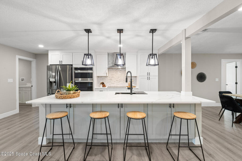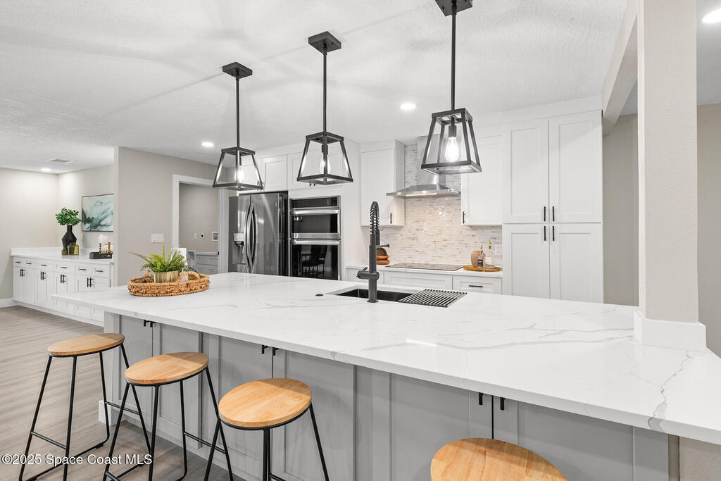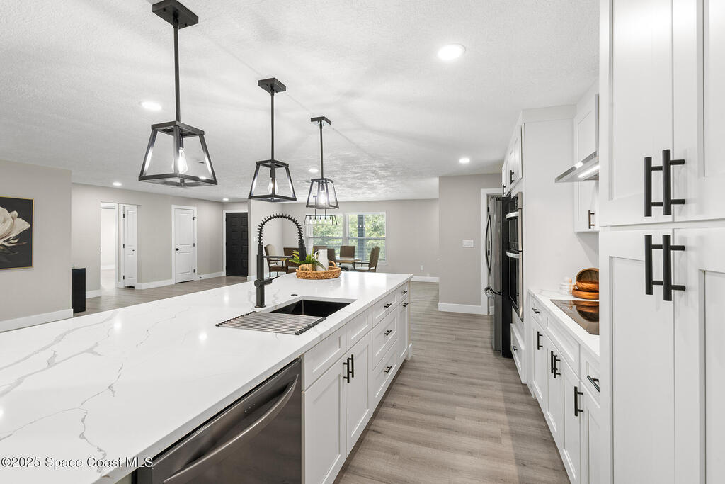 WHERE COUNTRY MEETS MODERN!!!! FULLY RENOVATED 4 bedroom 2 1/2 bathroom, just under 2700 sqft living on 1 ACRE LOT. The owner has all the upgrades and features of a new construction and wasted no cost on making this a dream home. NEW LUXURY VINYL throughout with quiet walk padding noise resistant. KITCHEN FULLY done with high-end LG stainless steel refrigerator, dishwasher, oven/microwave combo and flat stove top with hood. TONS of soft close cabinetry with quartz calcutta countertops in kitchen with a HUGE ISLAND, dining, laundry, and bathrooms. Living room has a built-in custom fireplace with shelving which includes a PRE-WIRED SPEAKER SYSTEM WITH SPEAKERS great for entertaining. HURRICANE IMPACT WINDOWS, DOORS, and GARAGE DOOR. Master bathroom is to die for, high-end tile with waterfall backsplash, custom rainshower, french drain, and dual 3-way to customize how you would like to shower. Master has own high in Bidet toilet. HUGE PATIO, black high chain-link dog-run on side of house
