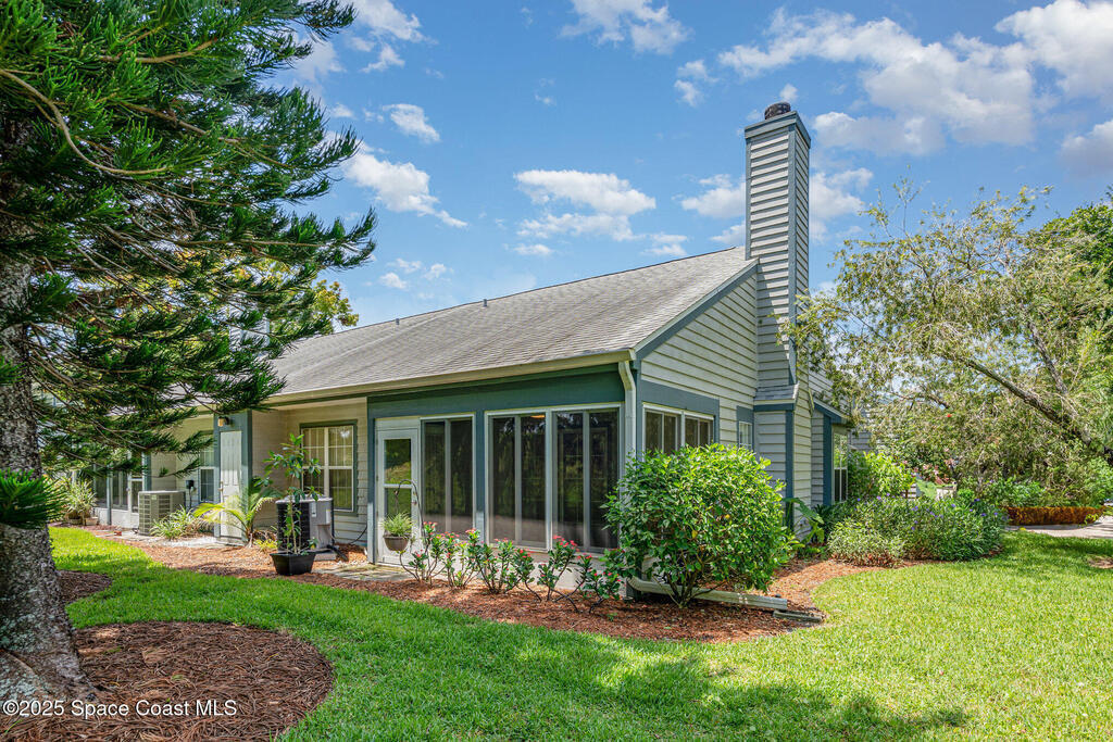 Carefree Living at an Affordable Price! WHY Rent? This peaceful Villa in a wooded Melbourne community. 1 story with vaulted ceilings and a cozy wood-burning fireplace creates the perfect retreat. Large primary bedroom has it own primary bathroom and lots of closet space. The enclosed lanai with energy efficient windows adds additional space perfect for relaxing. Enjoy the convenience of an attached garage with plenty of extra parking. Climate control storage in the attic. Large kitchen even includes a pantry. End unit on 1 floor with no steps. HVAC replaced in 2023. HOA fees include cable, internet, water and pest control as well as grounds and structure maintenance. Renovation design board available. Lake in the Woods also offers an optional membership which includes access to the community pool, clubhouse, tennis courts and gym. This ideal location is just minutes to shopping, dining, downtown Melbourne, and beautiful beaches--this villa truly has it all!