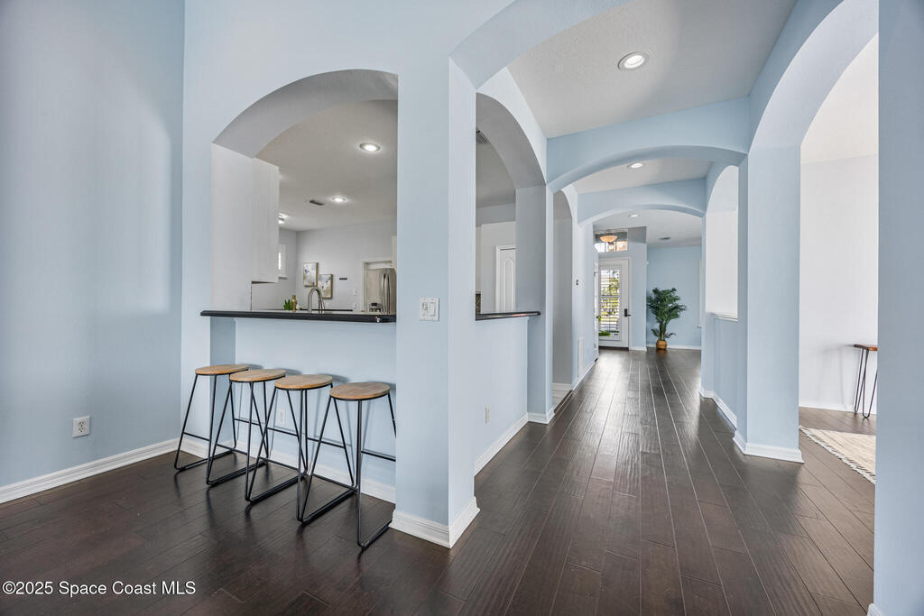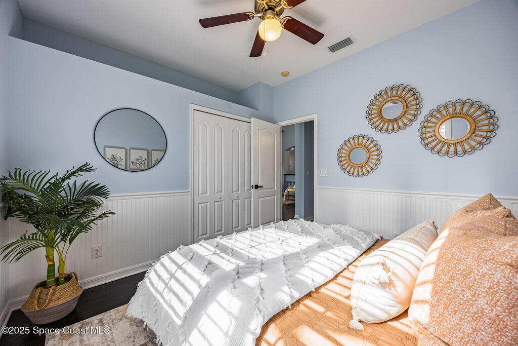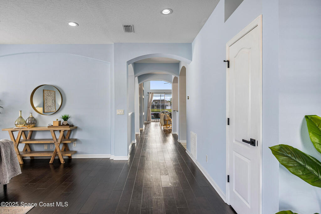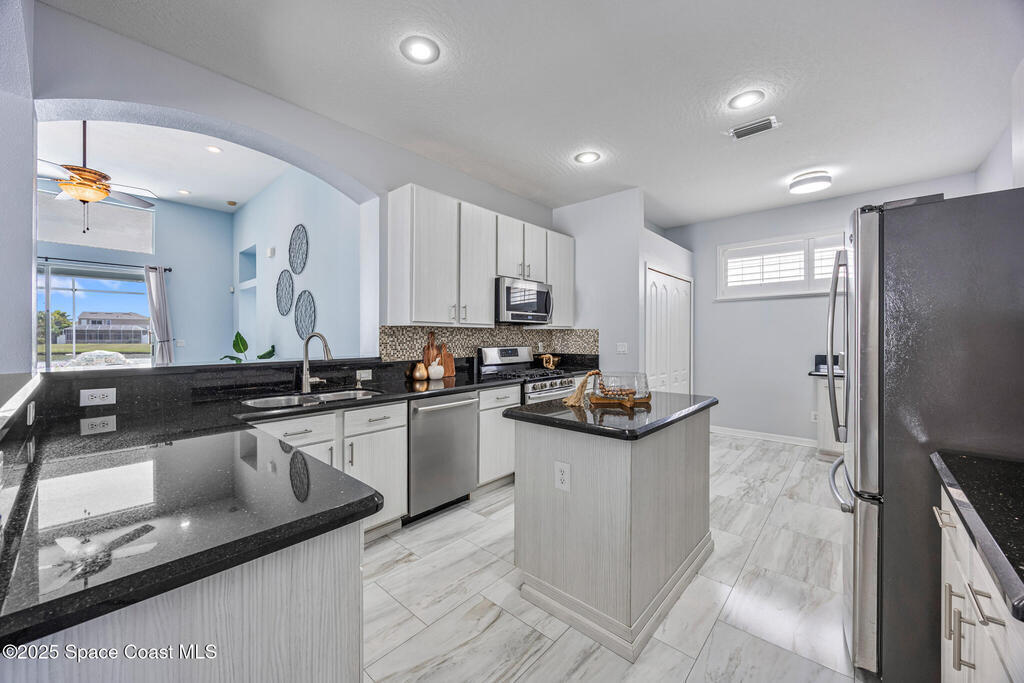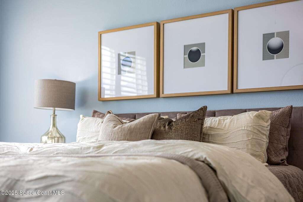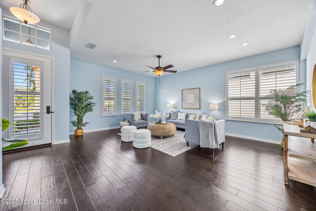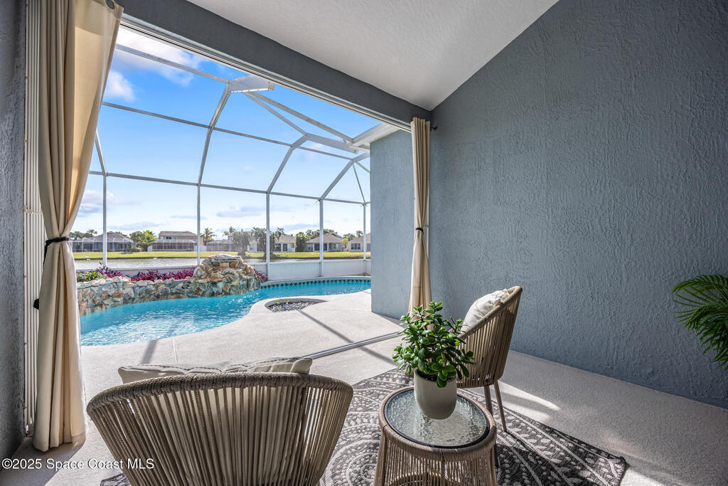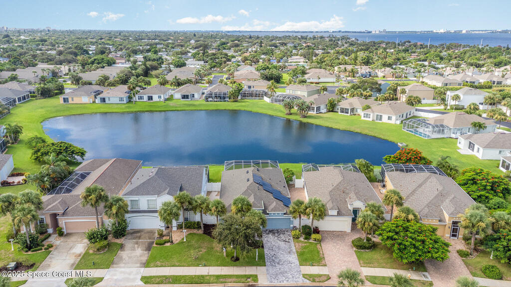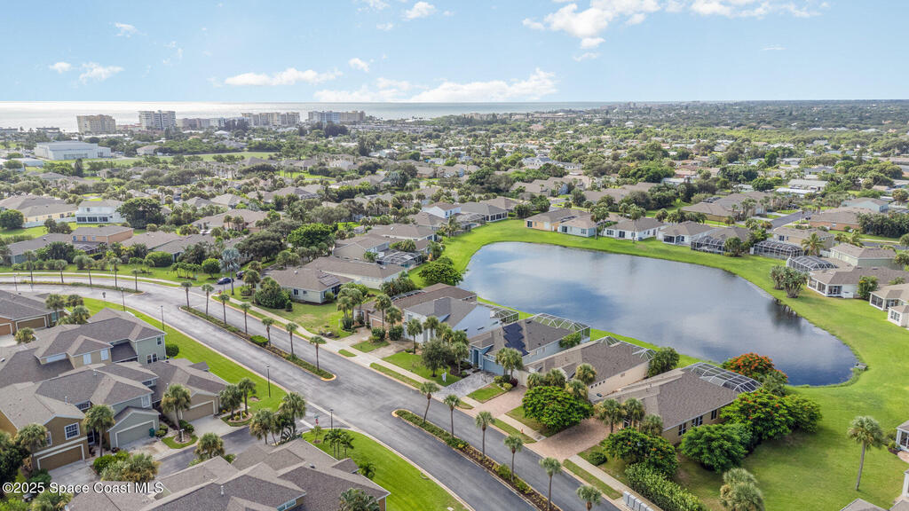 Beachside dream home conveniently located within the gated community of Oceanside Village. This well maintained, lakefront pool home offers the perfect blend of luxury and comfort. Solar powered (paid in full, no PACE loan), low electrical costs.The chef's kitchen boasts quartz countertops, soft close custom cabinetry, and stainless steel appliances; opening seamlessly into the spacious living and dining areas. Formal living and dining with a separate family room.Wake up to pool/lakefront views from your master suite. The ensuite bath features dual vanities with quartz countertops, a garden tub, separate shower and walk in closet. Split plan secondary bedrooms offer comfort and privacy.Enjoy the outdoors from your screened-in lanai, take a dip in the sparkling pool, or sip your coffee by the water's edge. Lakefront. Beachside. Gated. Solar. Nat. Gas.Roof 2022. Solar Panels 2021-low electric costs. Pool /Spa Resurface 2024.HVAC Carrier 2020. Accordion Hurricane Shutters.