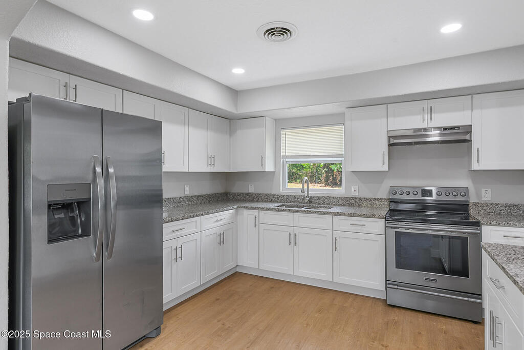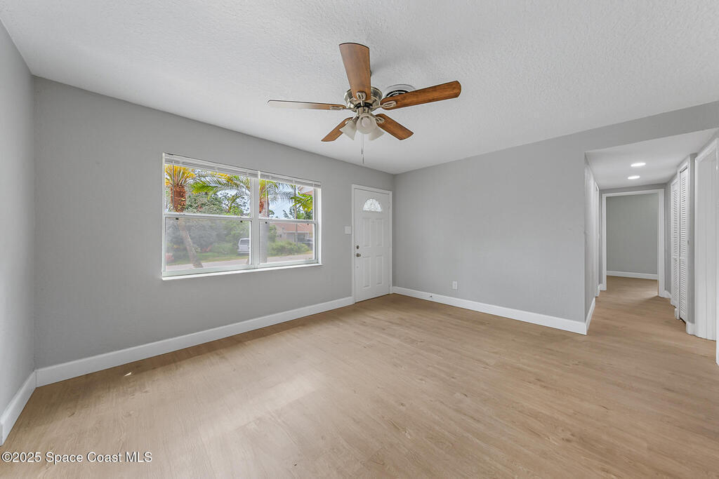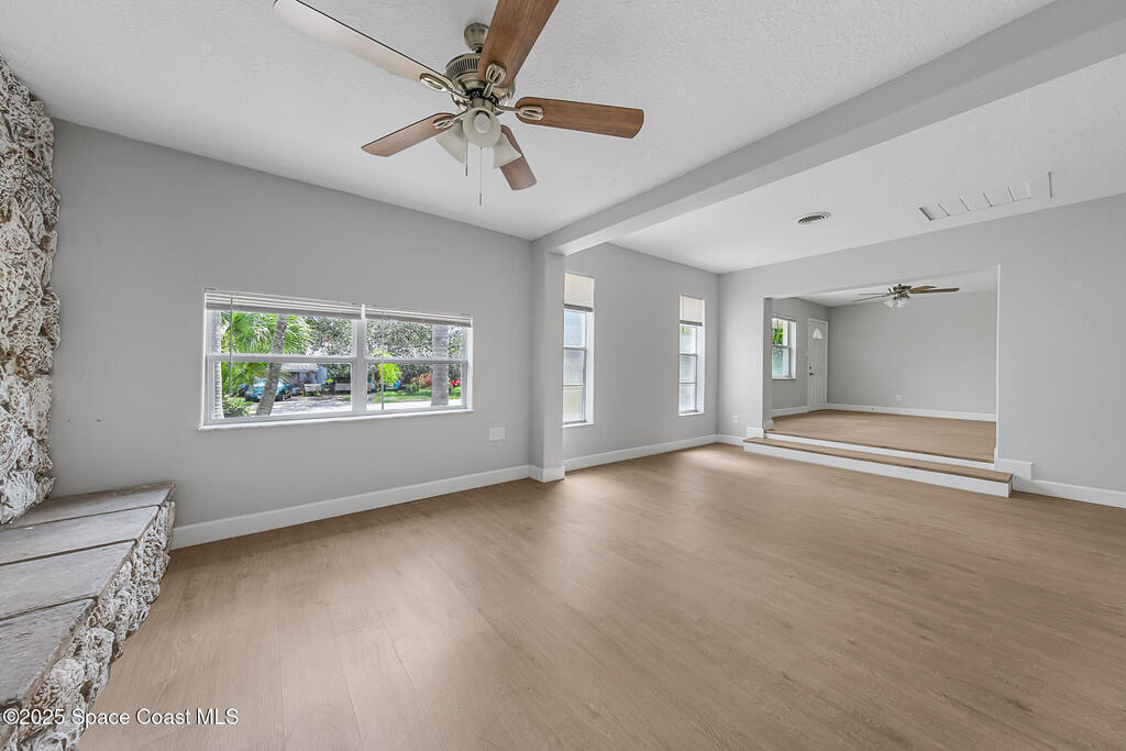 Tucked away in beautiful Merritt Island, this enchanting 2-bedroom, 2-bathroom home offers 1,128 square feet of warmth, charm, and lasting comfort. Recently updated with care, it's ready to welcome you with a brand-new roof and A/C (2025), luxury vinyl plank flooring, updated kitchen and baths, fresh paint inside and out, and an upgraded panel--ensuring peace of mind for years to come. From the moment you step inside, you're greeted by a cheerful foyer that flows into the dining space, setting the tone for a home that feels both open and intimate. At the heart of it all, the kitchen beckons with its arched entryway, generous counter space, and abundant cabinetry--offering everything you need for both quiet family dinners and lively gatherings. Just steps away, the family room feels like the soul of the home. With its striking stone-accented fireplace and sunlight streaming through walls of windows, it's a place to cozy up during cool nights or simply bask in the warmth of natural
