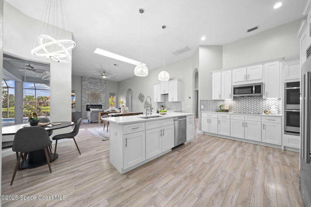 Ceiling Fan(s) , Guest Suite , Kitchen Island , Open Floorplan , Pantry , Primary Bathroom -Tub with Separate Shower , Skylight(s) , Split Bedrooms , Vaulted Ceiling(s) , Walk-In Closet(s)