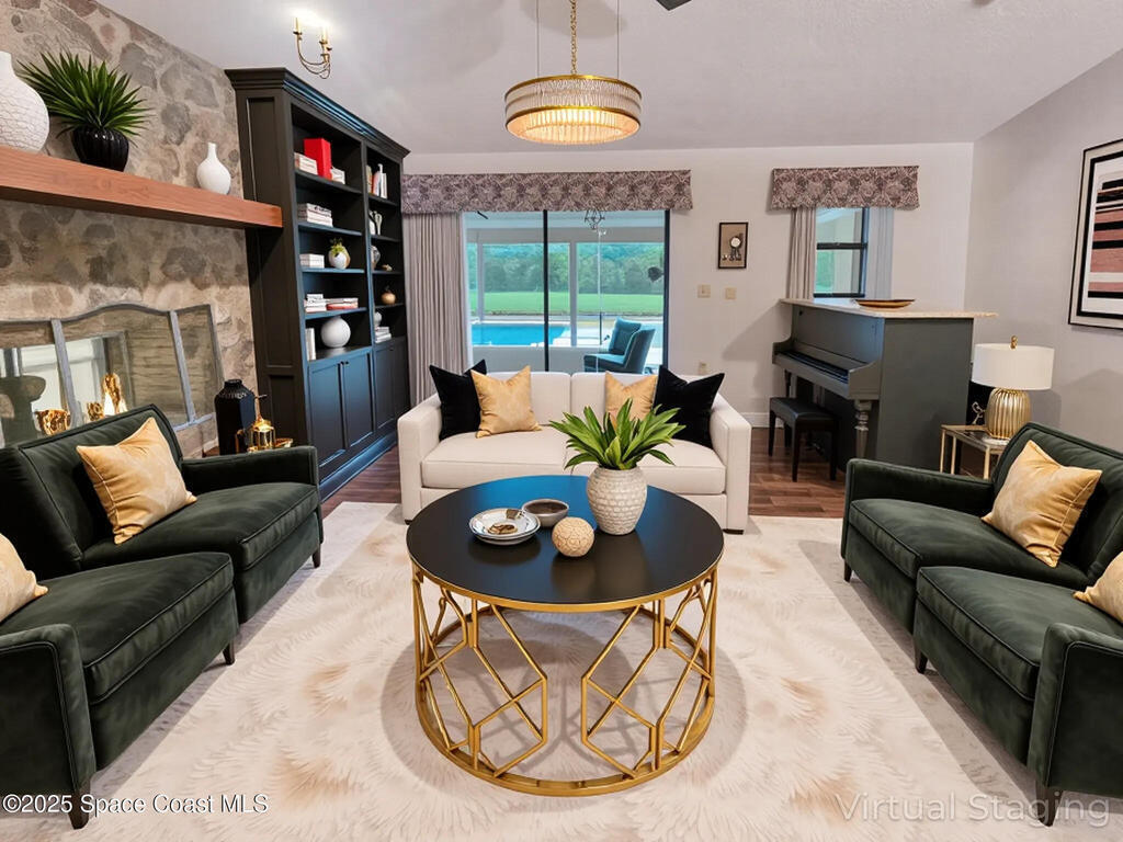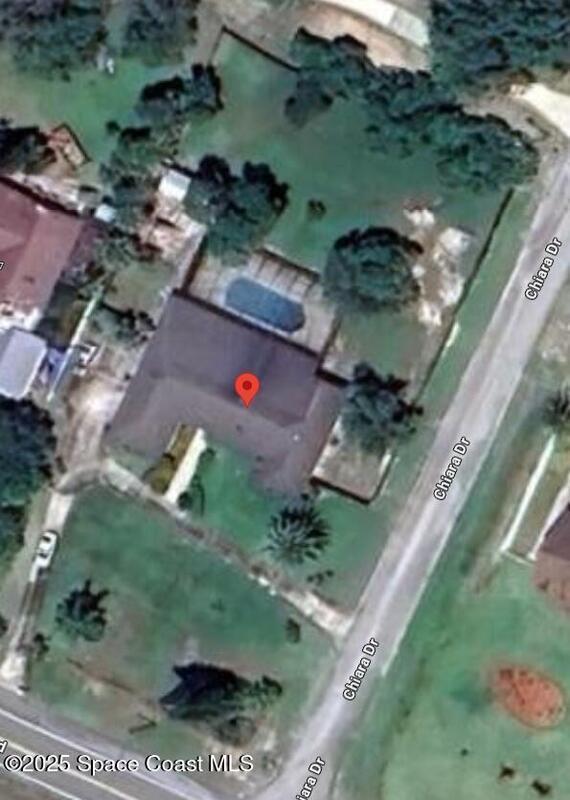 Your Private Paradise Awaits in Titusville! 1+ Acre HUGE Pool City Water!Some photos VIRTUALLY STAGED Well-loved and well-maintained home with accordion hurricane shutters, 2017 roof & one A/C. Expansive layout, HUGE pool & pool deck, HUGE raised patio & pass-through bar--an entertainer's dream on a prime acre! Fully fenced yard with powered shed & fruit trees. Granite kitchen, oversized office/game room. Close to shopping, dining, medical & Kennedy Space Center. HOME HAS CITY WATER, A UNIQUE AND VALUABLE FEATURE FOR THIS AREA, and fire hydrants on each side of the property. The rooms in the rear of the home have windows allowing you to know what's happening in the pool area at all times. Note the door closing off the 2 middle bedrooms for privacy and the circular driveway! Elegant 2 sided fireplace, French Doors and pass through kitchen to dining room and bar to pool area make this the perfect home for entertaining.This home is priced for your touches to make it your own.