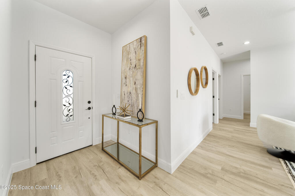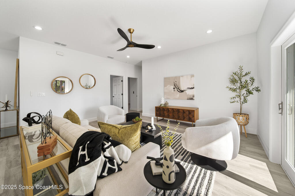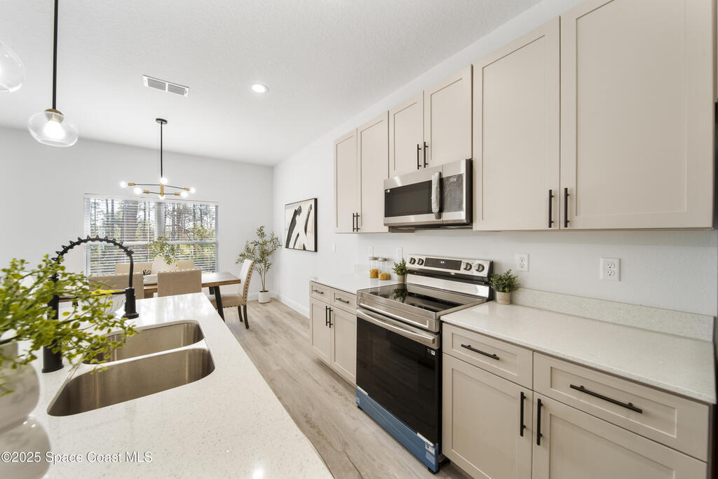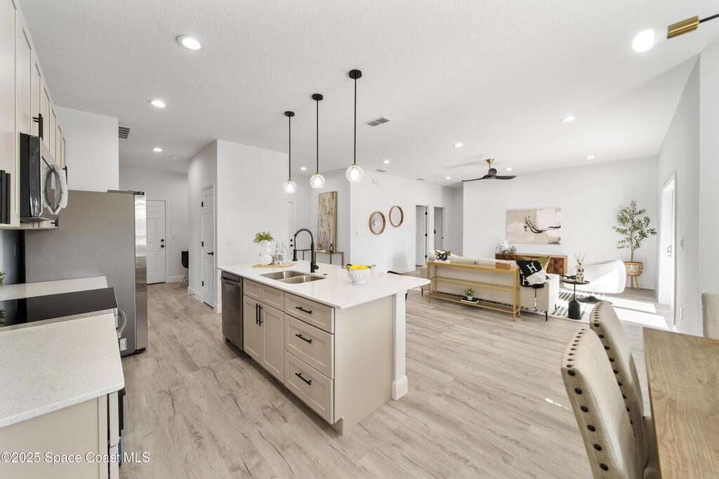 Modern Living in Palm Bay - Your Dream Home Awaits! Welcome to this beautifully designed brand-new home in the heart of Palm Bay, where modern aesthetics meet sturdy craftsmanship. Built with block construction, coated in durable stucco, and supported by a solid slab foundation, this home is built to stand the test of time. Step Inside: As you enter, you're greeted by a sunny and spacious open layout designed for both comfort and style. The home features a dedicated living area, a separate dining space, and a large kitchen - all bathed in natural light. Gourmet Kitchen Features: Elegant light shaker cabinets with soft-close technology, Stunning quartz countertops High-quality stainless steel