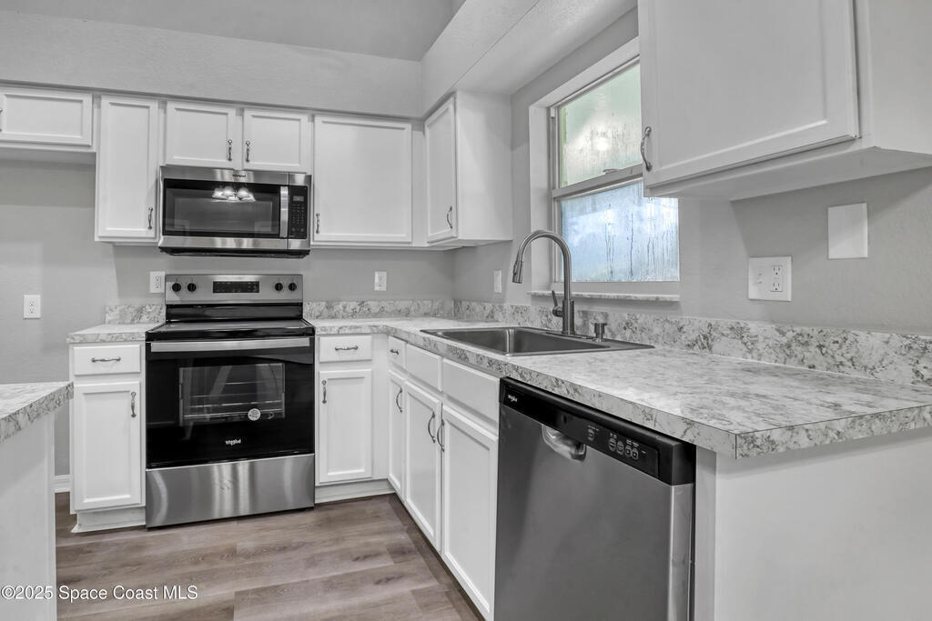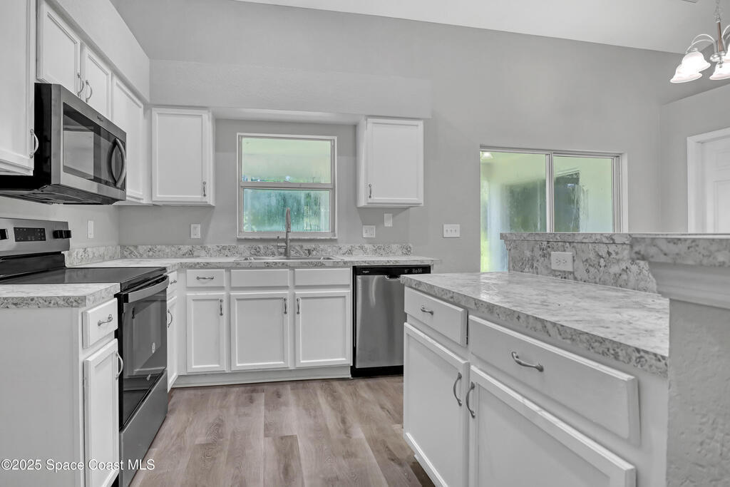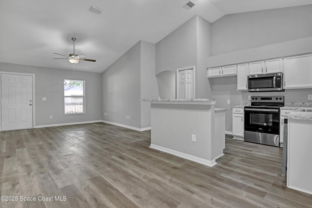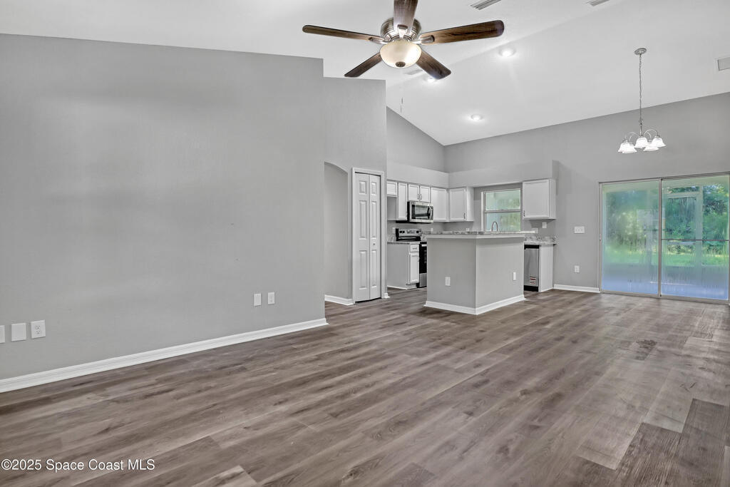 High ceiling in the living area, natural light, and a bright open layout makes this 3 bed 2 bath home a retreat you will love coming home to. Freshly painted with new flooring, updated baths, and a new HVAC and water heater for peace of mind. Enjoy morning coffee on the shady front porch, then gather friends for BBQs on the oversized screened lanai. Located in SE Palm Bay near Bayside Lakes, everyday conveniences like Publix, dining, and schools are minutes away, while Turkey Creek Sanctuary, Fred Poppe Park, and Melbourne beaches invite endless outdoor adventure.