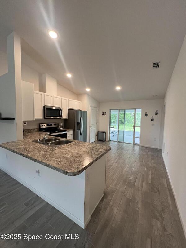 Ask about Closing Costs Assistance! Almost NEW (2023) 3 Bedroom 2 Bath 2 Car Garage Available NOW! Almost NEW - Built in 2023! Large Corner Lot .26 Acres! 4 Bedrooms (incl Flex Room) 2 Bathrooms! Concrete Block / Stucco! 2 Car Garage! Low-E Windows! Large Screened Patio! HUGE Additional Patio Slab! Traditional Septic System (NO service contract or permit required!)Energy Efficient Air Conditioner! Smart Thermostat! Energy Efficient Hot Water Heater! Large Master Bedroom w/ Walk-In Closet! Soaker Tub! Plank Tile Flooring Throughout! Open Floor Plan! Split Bedrooms! Wood Cabinets w/ 36Inch Uppers! Stainless Steel Appliances 2023!LED Lighting! Large Laundry Room Inside!Window Treatments/Blinds! Security Camera System! Hurricane Shutters! Amazing Location! House was Built By Avtec and looks Brand New!