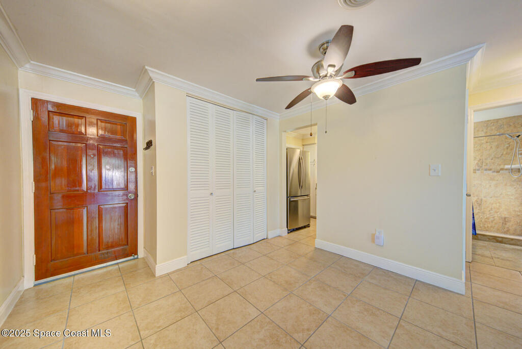 Want to be one block to the beach? this fully renovated unit is beautiful, light and bright. hurricane shutters, granite counter tops, low Hoa fees, community heated pool, granite counters, stainless steel appliances, tankless hot water heater, it looks across at a city park, close to stores and restaurants, 35 min to Orlando airport.