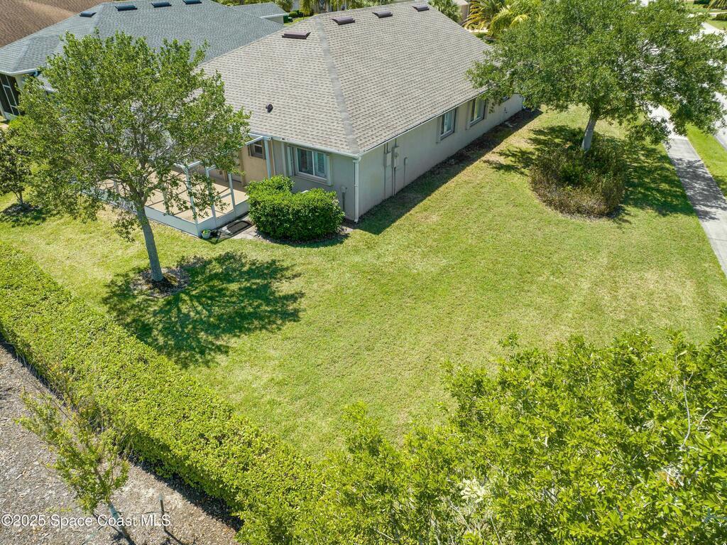 Guard-gated 55+ active-adult community! This 3 bedroom-2 bath-2 car garage home sits on an OVERSIZED CORNER LOT. This beautiful, thoughtfully designed layout has a NEW ROOF in 2025, NEW AIR CONDITIONER in 2025, NEW STAINLESS STEEL KITCHEN APPLIANCE PACKAGE in 2025, NEW HOT WATER HEATER in 2025 & INTERIOR OF HOME HAS BEEN FRESHLY PAINTED IN 2025!!! LOW INSURANCE PREMIUM!!! TERMITE BOND & SENTRICON SYSTEM! PLANTATION SHUTTERS throughout. EXTERIOR PAINT SCHEDULED IN 2026. Climate-controlled Florida room & a screened back porch backs to green space-NO NEIGHBORS BEHIND YOUR HOME! Minutes from Viera Hospital, championship Duran Golf Course, Shoppes at Viera & a brand new Publix! HURRICANE ACCORIDON SHUTTERS, along with the NEW ROOF, each offer peace of mind during storm season. This well-maintained home combines a ROBUST COMMUNITY CLUBHOUSE with many offerings within this friendly community!
