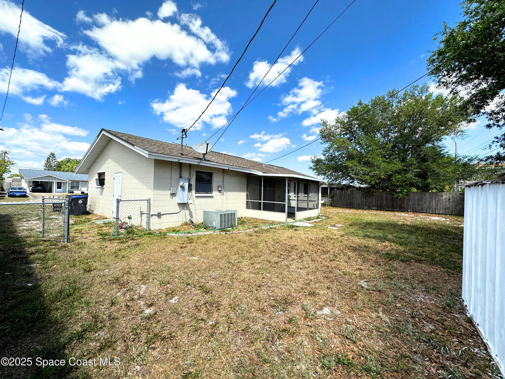 Welcome home! This solid concrete block 3 bedroom, 2 bath home features renovated kitchen and bathrooms bringing a fresh and modern feel. All tile and laminate flooring throughout means there's no carpet to worry about. You'll love relaxing on the screened-in back porch and appreciate the added convenience of a utility room with indoor laundry and a brand-new HVAC system giving you peace of mind and energy efficiency. Perfectly located for work, play, and convenience--just 18 minutes to Kennedy Space Center, 40 minutes to the sandy shores of world-famous Cocoa Beach, 8 minutes to shopping and dining at Titus Landing, and only 7 minutes to I-95 for an easy commute.This home blends comfort, updates, and location--all at once!