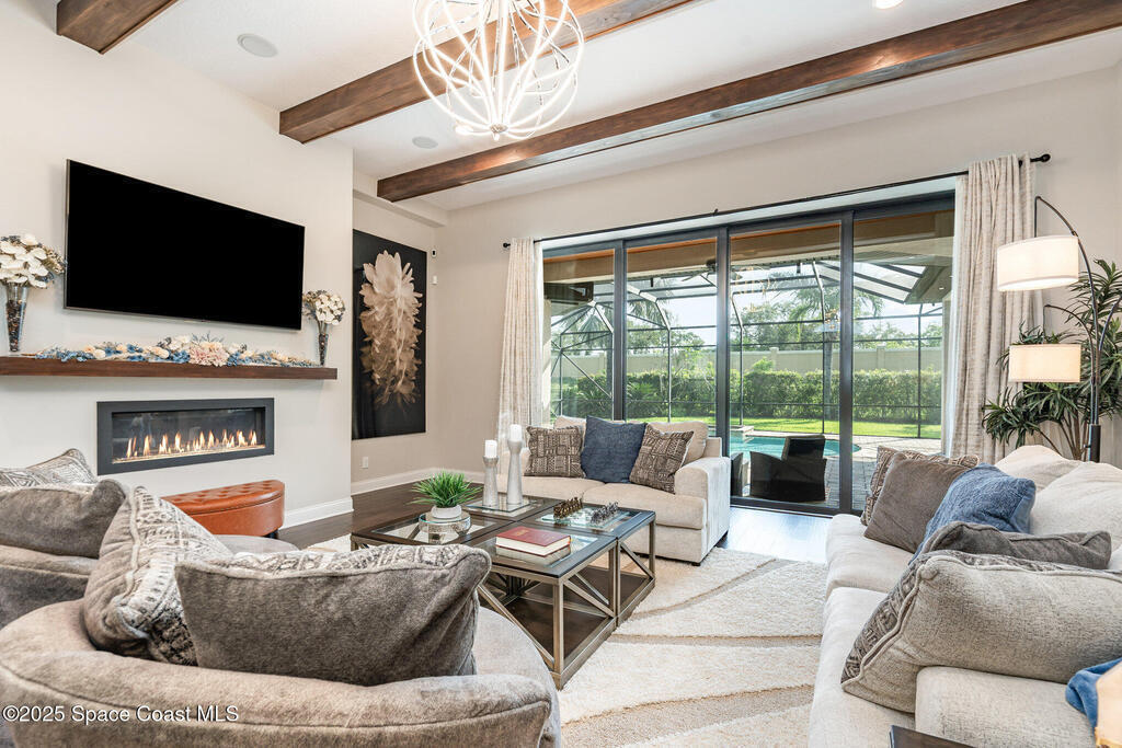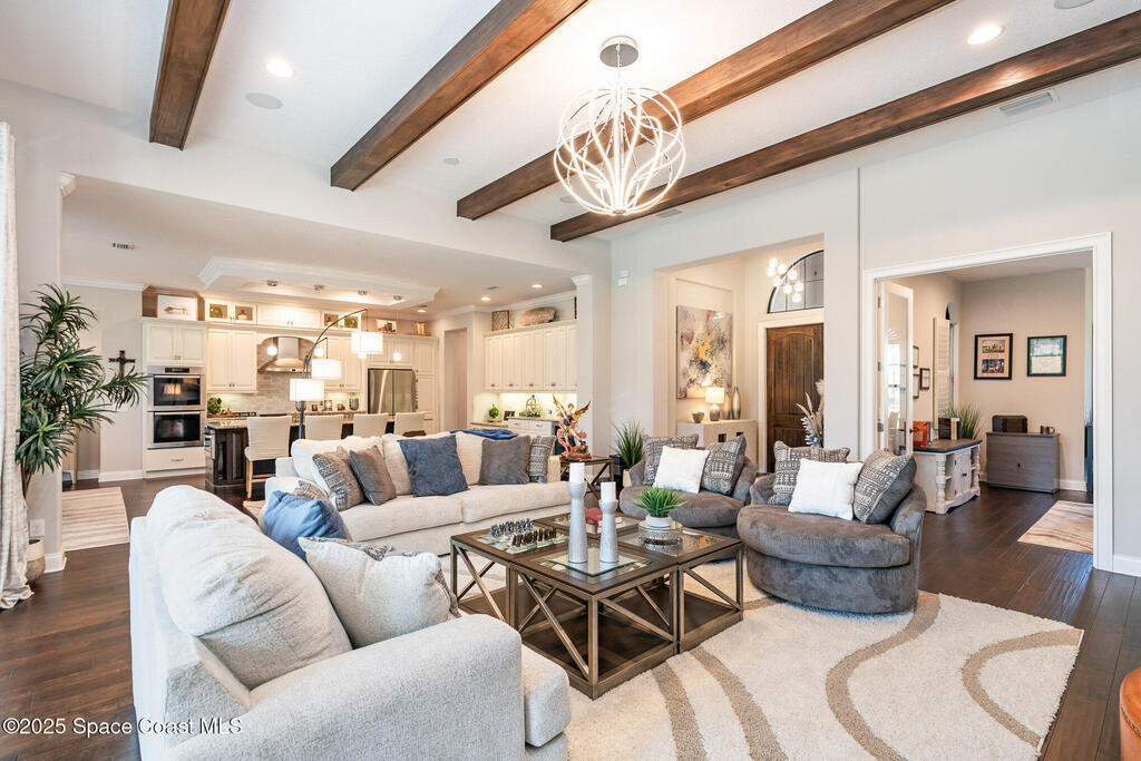 Welcome to one of the newest and most distinguished homes in the coveted Summer Lakes community. Built in 2013 by renowned builder, this stunning single-story residence offers 3,288 square feet of thoughtfully designed luxury living.Step through grand double wooden front doors into a home that immediately impresses with soaring ceilings, exposed wood beams, and rich hardwood flooring throughout. The spacious open floor plan includes 4 bedrooms, 3 beautifully appointed bathrooms, and an oversized office -- perfect for working remotely, hosting clients, or creating a private retreat.At the heart of the home is a chef's dream kitchen, featuring an oversized granite island, Miele built-in double ovens, a Wolf gas cooktop, built-in microwave, farmhouse sink, and bar seating - all surrounded by elegant finishes and top-of-the-line appliances.