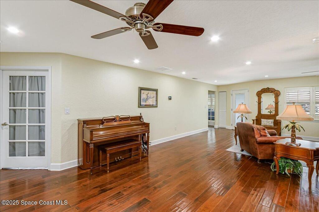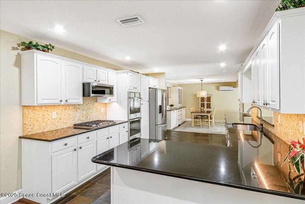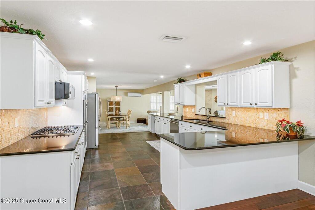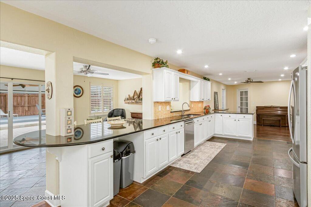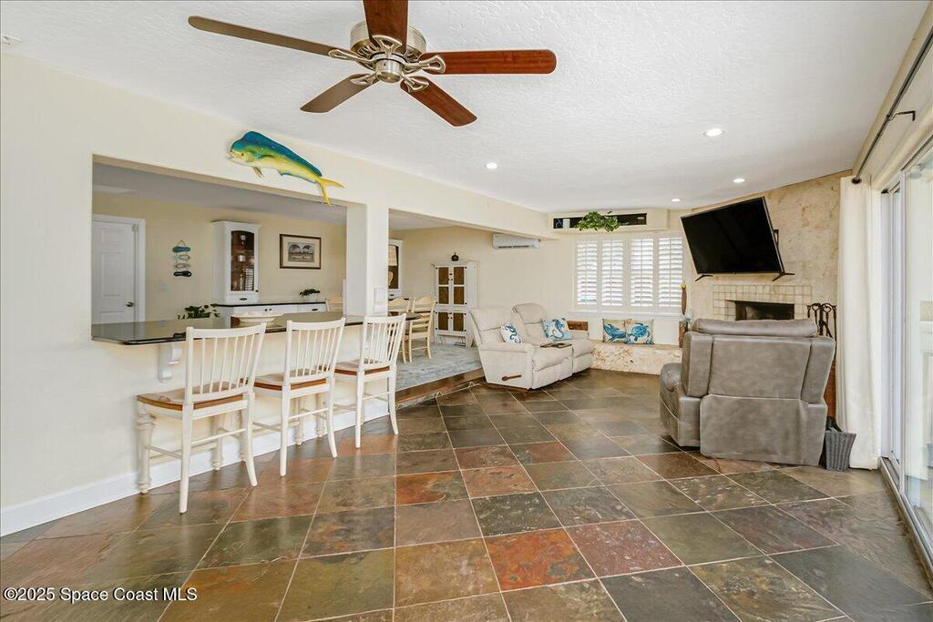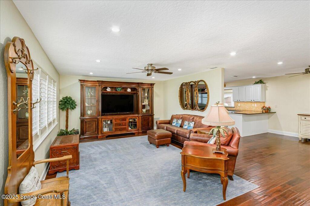 Beautifully updated Satellite Beach 4-bedroom pool home in move-in condition! The backyard is a tropical retreat featuring a large pool and spa, privacy fence, boat/RV parking, and a summer kitchen with TV, sink, fridge, grill, and electric hurricane screen. Enjoy the composite deck, firepit, and ideal entertaining space. Inside features wood and tile floors, plantation shutters, and a dream kitchen with granite, double ovens, gas range, stainless appliances, and bar with pull-out cabinets. Water filtration system under sink. The enclosed family room has a wood-burning fireplace and its own mini-split. Master suite includes French doors to the pool, walk-in closet, jetted tub, and walk-in shower. Major updates: new roof (2024), whole-house replumb, Cat 5 wiring, new pool/sprinkler pumps, tankless water heater. Close to beaches, A-rated schools, shopping, and dining. Simply a stunning beachside retreat you'll love to call home! Must see to appreciate.