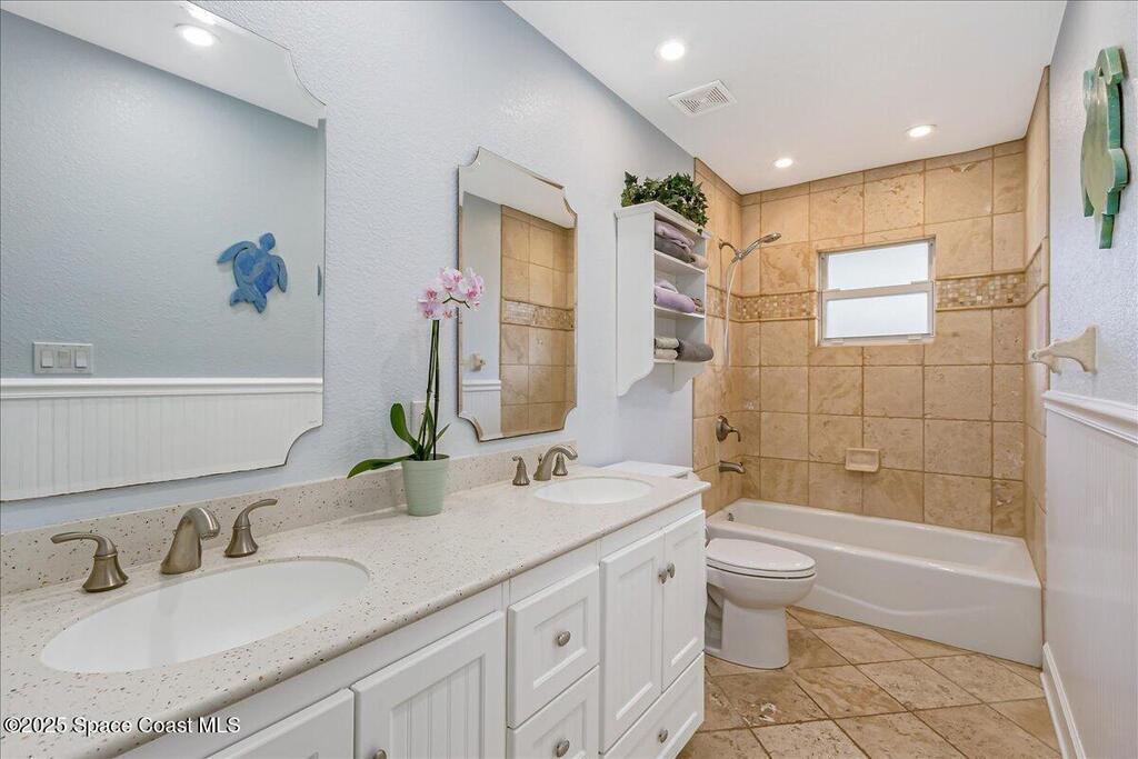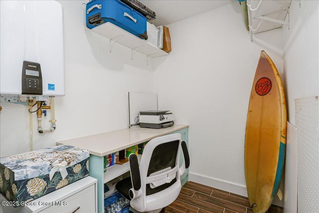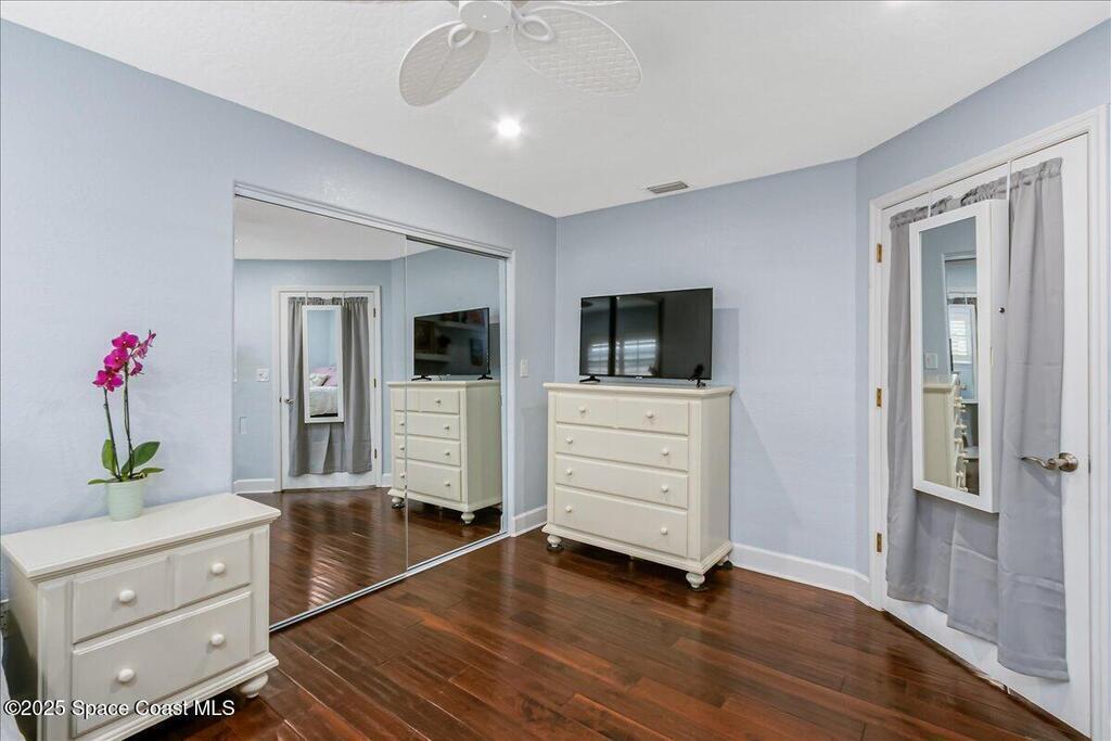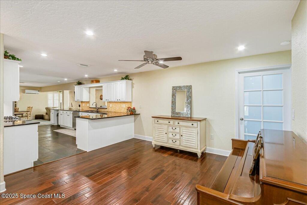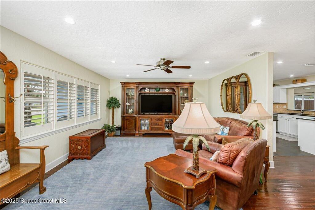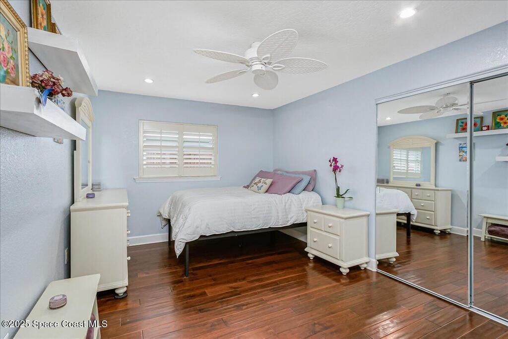 Beautifully updated Satellite Beach 4-bedroom pool home in move-in condition! The backyard is a tropical retreat featuring a large pool and spa, privacy fence, boat/RV parking, and a summer kitchen with TV, sink, fridge, grill, and electric hurricane screen. Enjoy the composite deck, firepit, and ideal entertaining space. Inside features wood and tile floors, plantation shutters, and a dream kitchen with granite, double ovens, gas range, stainless appliances, and bar with pull-out cabinets. Water filtration system under sink. The enclosed family room has a wood-burning fireplace and its own mini-split. Master suite includes French doors to the pool, walk-in closet, jetted tub, and walk-in shower. Major updates: new roof (2024), whole-house replumb, Cat 5 wiring, new pool/sprinkler pumps, tankless water heater. Close to beaches, A-rated schools, shopping, and dining. Simply a stunning beachside retreat you'll love to call home! Must see to appreciate.