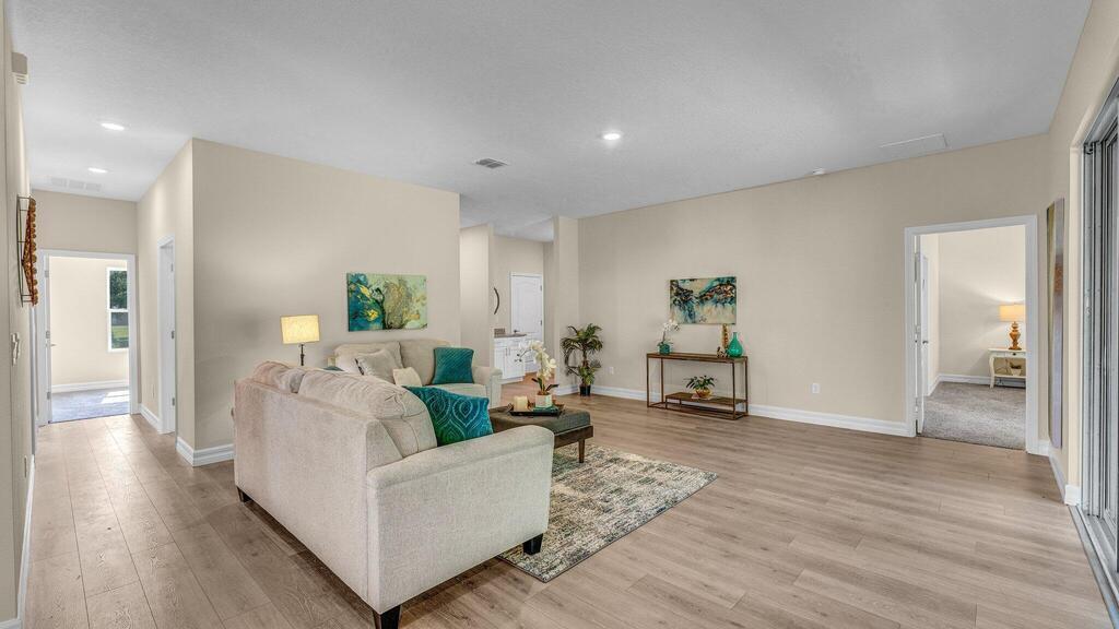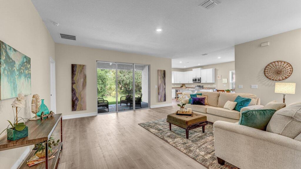 *$10,000 Buyer INCENTIVE AVAILABLE to be used for closing cost and interest rate Buydown!* Impeccably designed 4-bedroom 3-bathroom home available for immediate occupancy. From the moment you arrive you will notice the difference with volume 9'4'' ceilings throughout the entire home. The main living space is centered around the Great Room with stunning 8' three panel sliding glass door that overlooks the covered lanai which perfectly integrates the indoor/outdoor living space. The kitchen showcases granite countertops, Samsung stainless steel appliance, 42'' upper cabinets, oversized island, and 8' French Doors leading to the cover lanai. Owner's Suite features trey ceiling, oversized dual sink vanity, tastefully designed shower with glass enclosure, and his & hers closets. All guest bedrooms are well sized with ample closet space. Guest bathrooms both feature tub/shower combos with white subway tile. Laundry room includes additional linen storage.