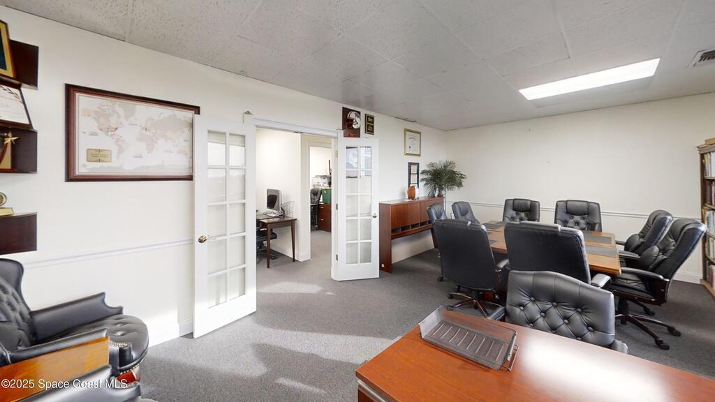 Available October 1, 2025. Centrally located Cocoa Beach commercial office on the 4th floor of the Cape Royal Building with a West facing picturesque view of the Banana River. The office is configured with a reception/bull pen area, private office, server closet and a large office/conference room for 594 contiguous square feet. (Units 426-428) The building has 24-hour access with automatic front doors and secure after-hours locking doors. There is plenty of parking in front and rear of the building. 3 elevators for quick access. Brand new impact windows and exterior paint for a fresh look. Digital and Pylon signage available from the Association. The building has fire protection in the form of sprinklers. FedEx and UPS has onsite lobby pickup. Rent includes electricity. Public restrooms on floors 2-10. Association fee paid by Owner. Diverse tenant mix and most commercially zoned businesses allowed. Owner is a Licensed Real Estate Broker.