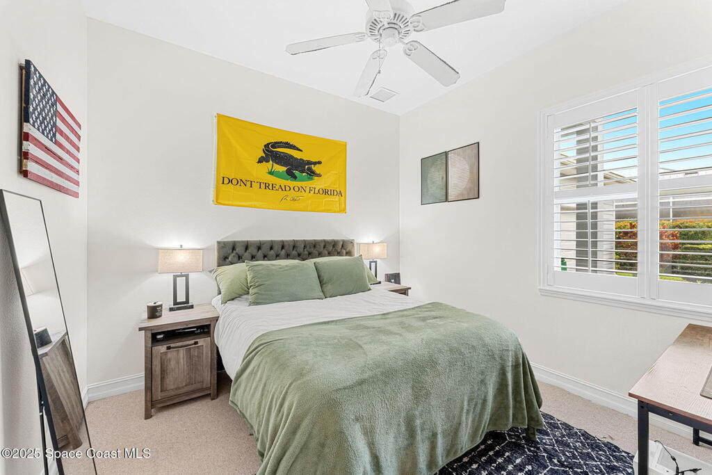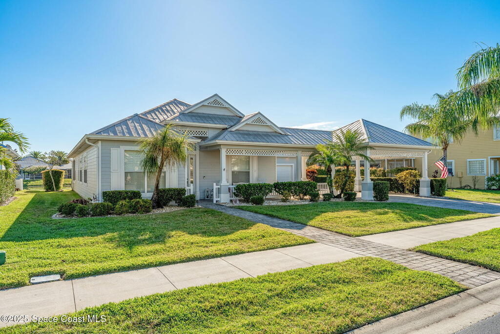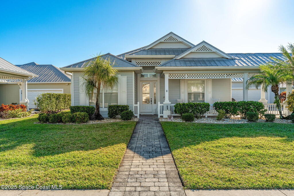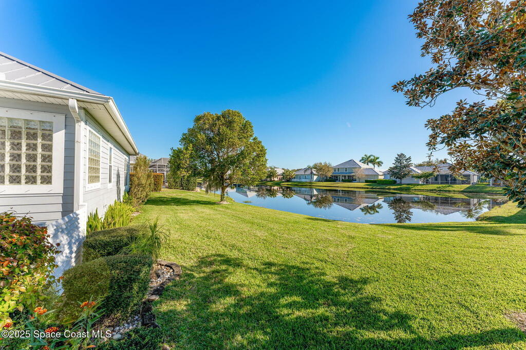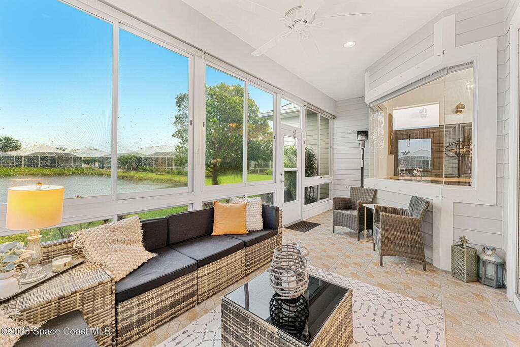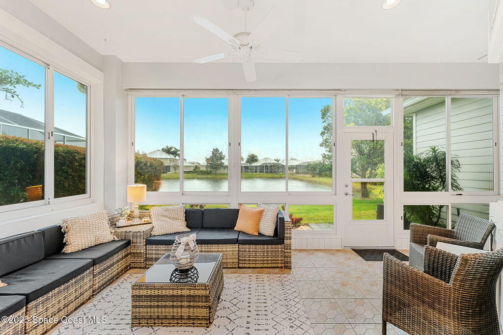 Discover a beautifully maintained home in a gated, Key West-inspired Suntree community. This flexible 4BR plan (or 3BR + office) features an open living space anchored by a spacious kitchen with Cheyenne cabinetry, gas cooktop, walk-in pantry, and generous storage. The primary suite offers two large closets, dual vanities, a jetted tub, and a walk-in shower. An enclosed patio overlooks tranquil water views, creating an inviting spot to unwind or entertain. Additional highlights include plantation shutters, a metal roof, paver driveway, oversized garage, and a welcoming portico. The HOA handles lawn care, exterior paint, and community upkeep for easy living. Enjoy quick access to Suntree Country Club along with nearby shopping, dining, beaches, and major roadways--an ideal blend of comfort, convenience, and low-maintenance style.
