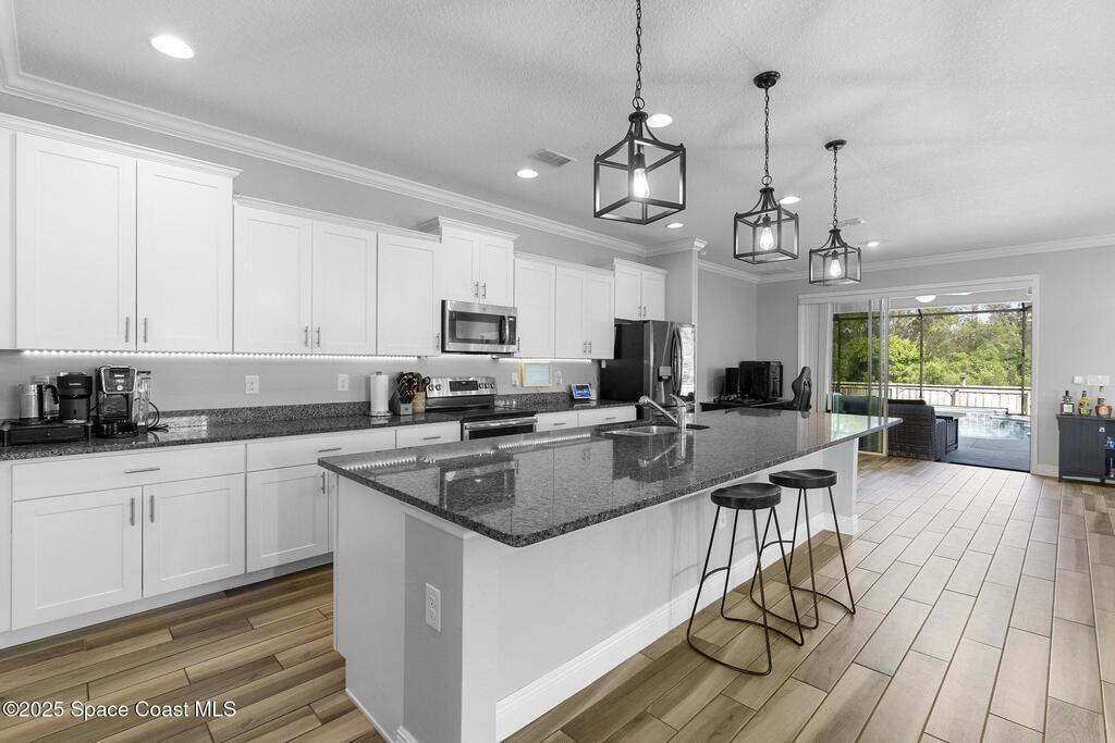 In foreclosure..a steal for this price! This beautifully updated 4-bed, 3-bath split floor plan home sits on a spacious .67-acre lot, offering the perfect blend of modern comfort and everyday convenience. Step inside to discover thoughtful upgrades throughout--from a smart thermostat and stylish light fixtures to elegant high-end finishes. The open-concept kitchen is a chef's dream, featuring granite countertops, stainless steel appliances, and a walk-in pantry. The private primary suite is your personal retreat with a custom walk-in closet and a spa-inspired bathroom, complete with a soaking tub and a luxurious waterfall shower. A versatile bonus room offers space for a home office, gym, or playroom. Outdoors, the brand-new saltwater pool with waterfall feature and screened enclosure set the stage for endless relaxation and entertaining. Located in a welcoming, family-friendly, gated community that hosts events year-round--this home is more than a place to live, it's a lifestyle