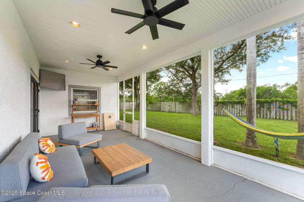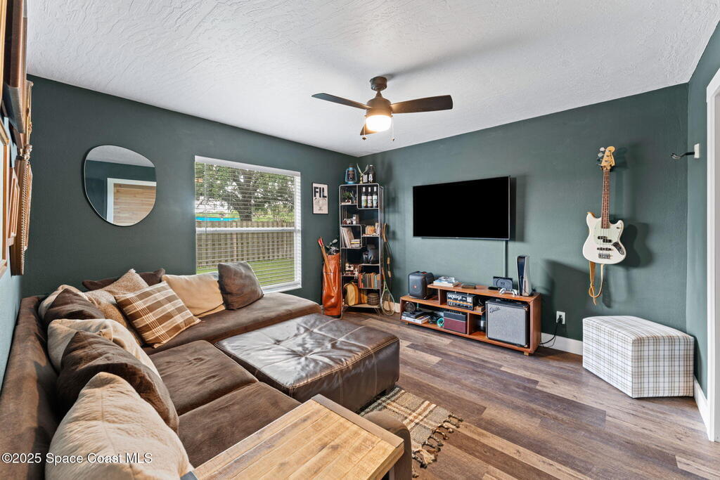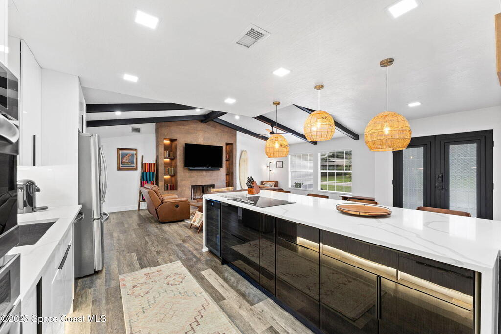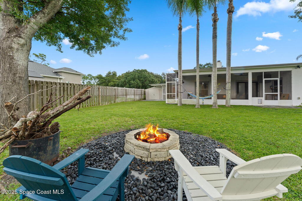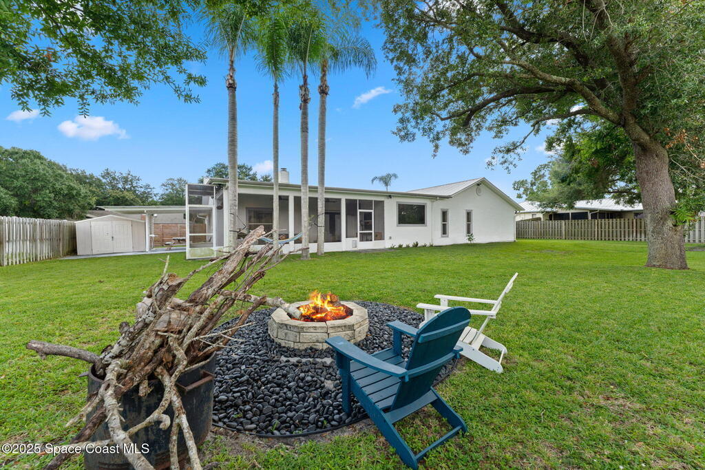 This Palm Bay gem brings all the vibes! With 3 bedrooms, 2 baths, and a 2-car garage, the open floorplan and vaulted ceilings make it feel light, bright, and wide open. The kitchen steals the show with a big island and wine cooler-perfect for cooking, sipping, or entertaining. Cozy up by the wood-burning fireplace, spread out with split bedrooms, and enjoy the convenience of LVT & tile floors throughout. Thoughtful updates include a tankless water heater, smart thermostat, and manual storm shutters for peace of mind. Outside, you'll love the screened patio, fenced yard, storage shed, and fire pit-perfect for gathering with friends under the stars. Stylish, functional, and move-in ready-this one checks all the boxes!