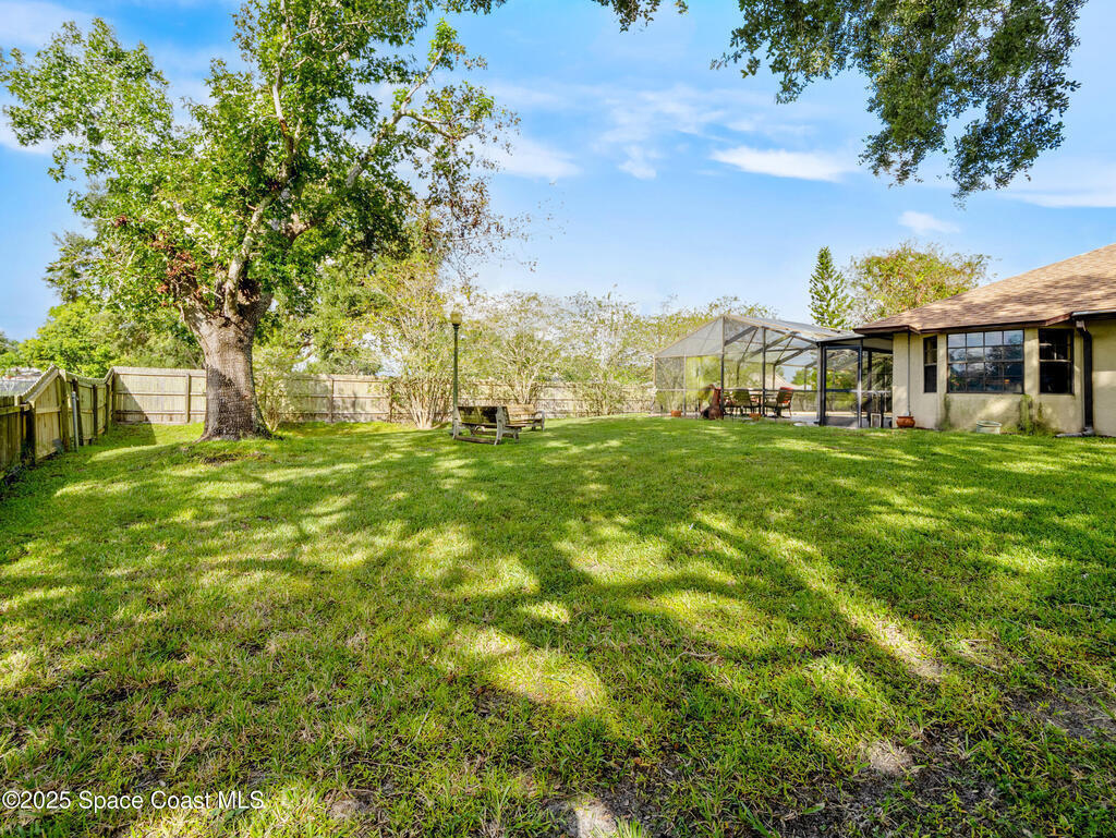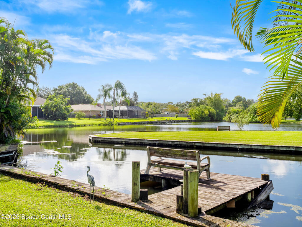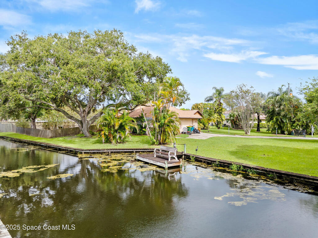 This home can be purchased with NO INCOME VERIFICATION needed!Tucked away at the end of a peaceful Merritt Island cul-de-sac, this one-of-a-kind Florida charmer is the kind of home everyone will be talking about. Set on over half an acre of fully fenced paradise, this sprawling retreat features cozy outdoor benches perfect for gathering around a crackling bonfire under the stars. Step into your private oasis and dive into the sparkling pool surrounded by a full birdcage enclosure--perfect for year-round relaxation, weekend get-togethers, and unforgettable summer nights. Follow the path to your private dock where a timeless wooden bench invites you to unwind and watch the water shimmer in the afternoon sun. Inside, an open-concept layout offers oversized bedrooms, spacious baths, and endless versatility. The attached ''apartment'' space--already equipped with plumbing--can easily transform into a guest suite, home gym, or studio. Recent updates include a brand-new roof installed January