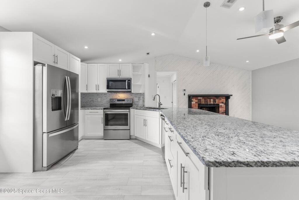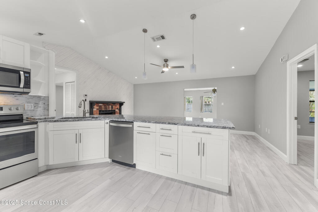 ****New Roof To Be Installed November 2025****This newly renovated 3-bedroom, 2-bath home in SE Palm Bay perfectly blends modern style with everyday convenience. Step inside to an open-concept design highlighted by luxury vinyl plank flooring and crisp, neutral finishes that make every space feel fresh and inviting. The chef-inspired kitchen showcases sleek quartz countertops, stainless steel appliances, and soft-close cabinetry, while a versatile flex room adds the perfect touch for a home office or second living space. Outside, the fully fenced backyard offers privacy and endless possibilities for entertaining or relaxing. Ideally located near shopping, dining, I-95, and just minutes from the beach, this home is truly move-in ready. NEW A/C 2025 and Roof 2018.