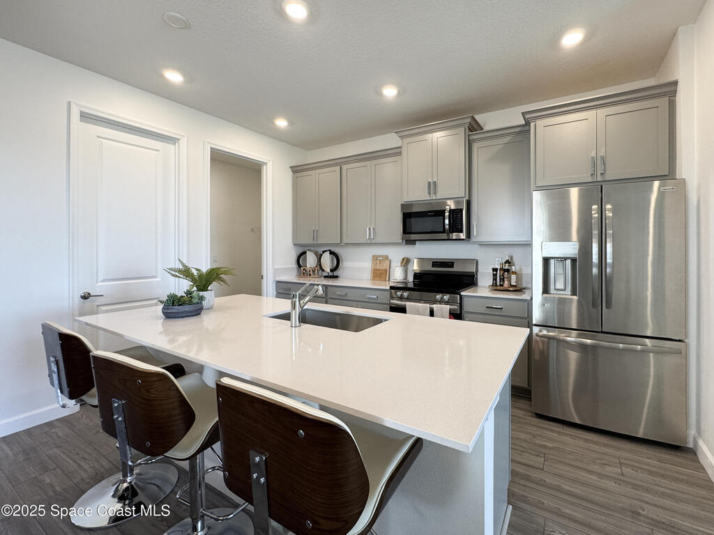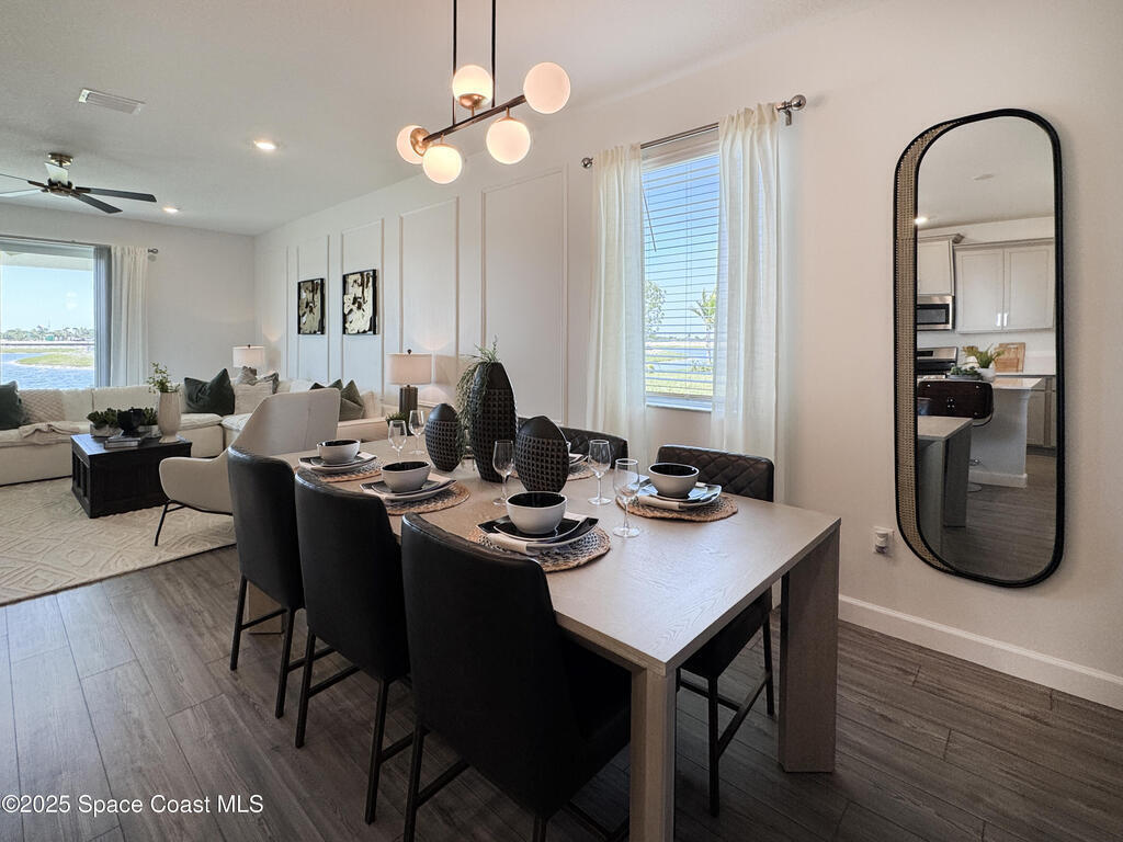 This spacious two-story home features an open-concept layout shared between the kitchen, dining and living room to promote effortless transitions between spaces. A back covered patio is ready for outdoor leisure. The comfortable owner's suite is tucked on the first floor for added privacy, while the top floor hosts four secondary bedrooms and a large loft area. This home features impact windows, paver driveways/walkways, quartz countertops in the kitchen and baths, crown molding in main living area, ceramic tile throughout 1st floor main living areas, grey shaker style cabinets with crown molding, faux blinds on windows, a covered lanai, and so much more. Prices, dimensions and features may vary and are subject to change. Photos are for illustrative purposes only.