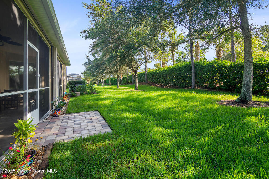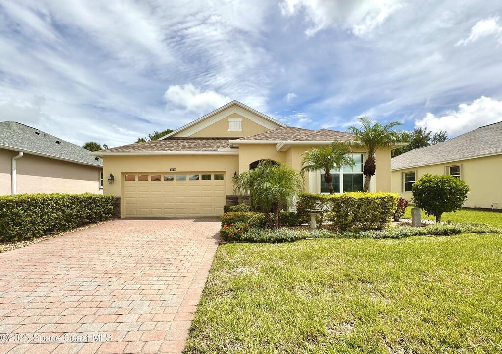 Experience refined, low-maintenance living in this beautifully maintained, move-in ready home located in Brevard's premier 55+ guard-gated community with 24-hour security. This 3-bedroom, 2-bath residence showcases a spacious, truly open floor plan with rich hardwood flooring & tile in the kitchen, baths, & laundry. The chef's kitchen features abundant solid wood cabinetry, granite countertops, & an expansive breakfast bar - perfectly positioned to stay connected with guests in the adjoining great room. A coffered ceiling crowns the great room, while pocketing quad sliders open to a large, tiled, under-truss screened lanai with a summer kitchen & a private, serene backyard. The spacious owner's suite offers custom closets & a spa-like ensuite bath with split vanities, a soaking tub, & walk-in shower. Recent upgrades include a NEW 2025 roof & gutters, fresh interior/exterior paint, accordion storm shutters, & impact rated front door. Elegant & move-in ready, this home truly has it all.