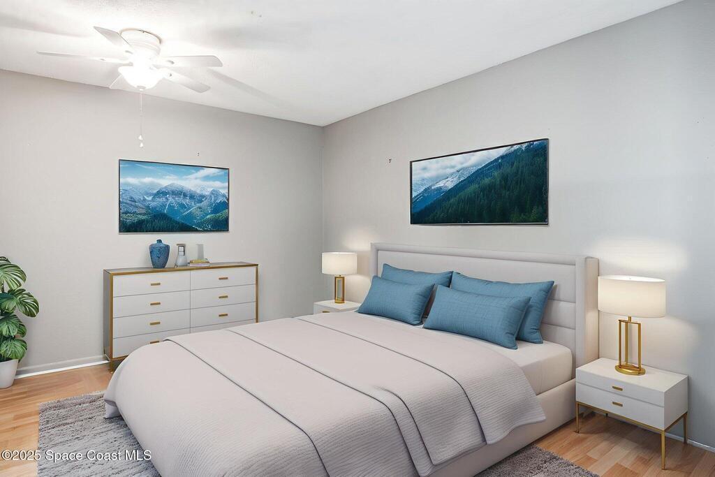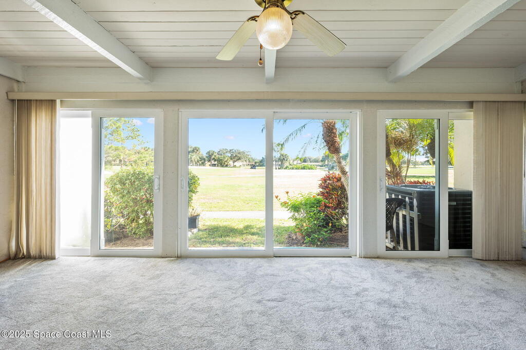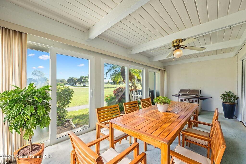 Prime Suntree location! This 1947 sq ft townhome (per owner) includes a 219 sq ft climate-controlled sunroom with stunning water and fairway views of Suntree's Championship Classic Golf Course. Featuring three bedrooms, each with its own ensuite bath, the flexible downstairs suite with walk-in closet is open to both the bedroom and hallway, making it ideal for guests or a home office. Spacious garage fits both car & golf cart! Recent updates include impact sliding glass doors (primary & sunroom), new A/C & water heater (2024), roof (2023), Trex balcony decking, newer carpet, LVP floors, and a new balcony railing on the way. Zoned for top-rated schools: Suntree Elementary, Viera Middle & Viera High. Low monthly fee covers insurance, exterior maintenance, roof, paint, water, sewer, pest & trash. Close to I-95, medical, shopping, dining & beaches!
